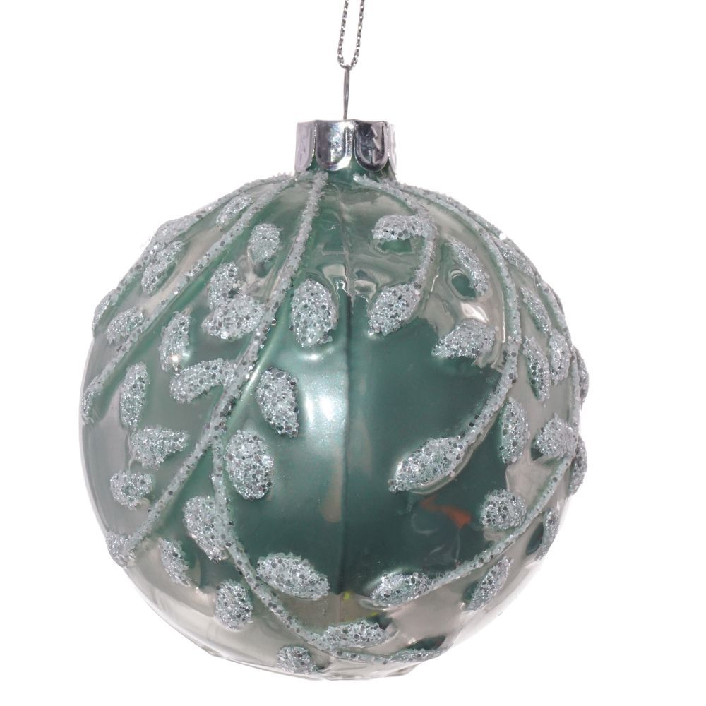 Стеклянный шар выполнен в традиционном праздничном стиле. Глянцевая поверхность и изящные узоры придают этому шару особую изысканность.