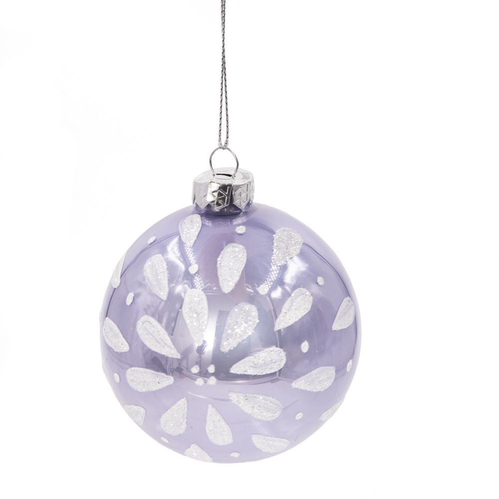 Новогодний фиолетовый елочный шар с каплевидным узором, изготовлен из стекла, упаковка- коробка