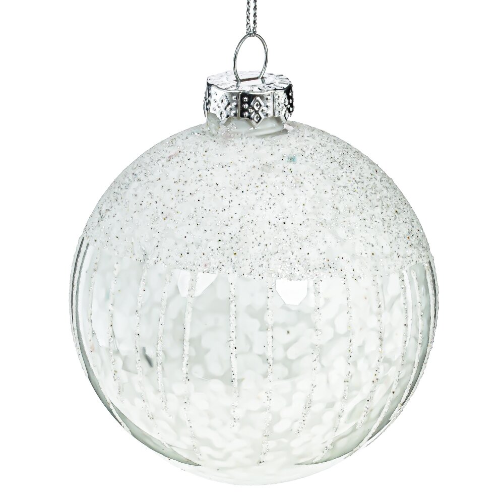 Елочный шар – классика новогоднего декора. Украшение представлено с декором из глиттера. Любая елка будет смотреться более привлекательно, если повесить на нее этот шар.