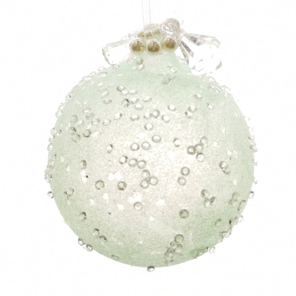 Стеклянный Шар с потрясающей фактурой в виде россыпи капель. Это новогоднее украшение непременно порадует вас своим изяществом и прекрасно дополнит праздничный наряд лесной красавицы.