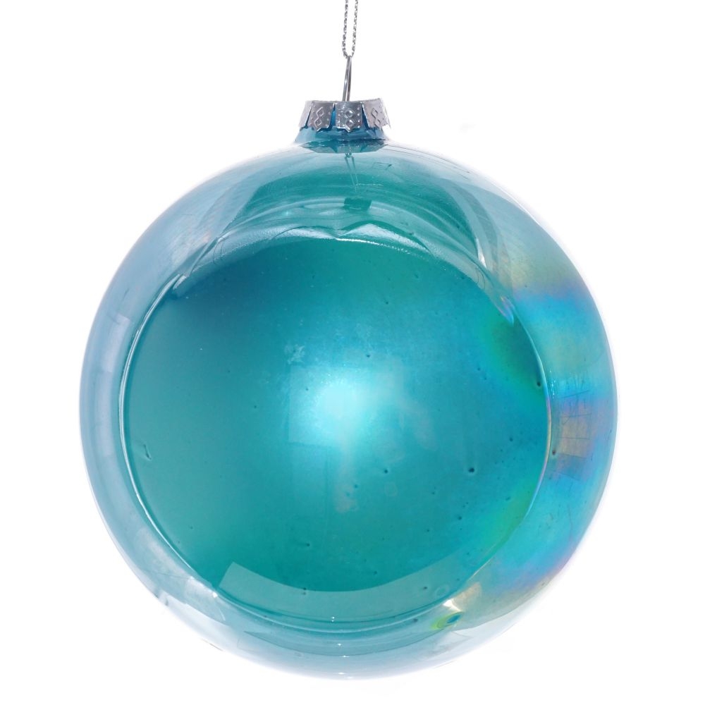 Новогодний простой глянцевый голубой шар, изготовлен из стекла, упаковка- коробка