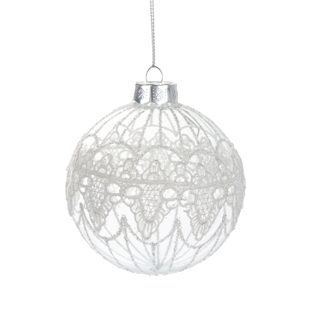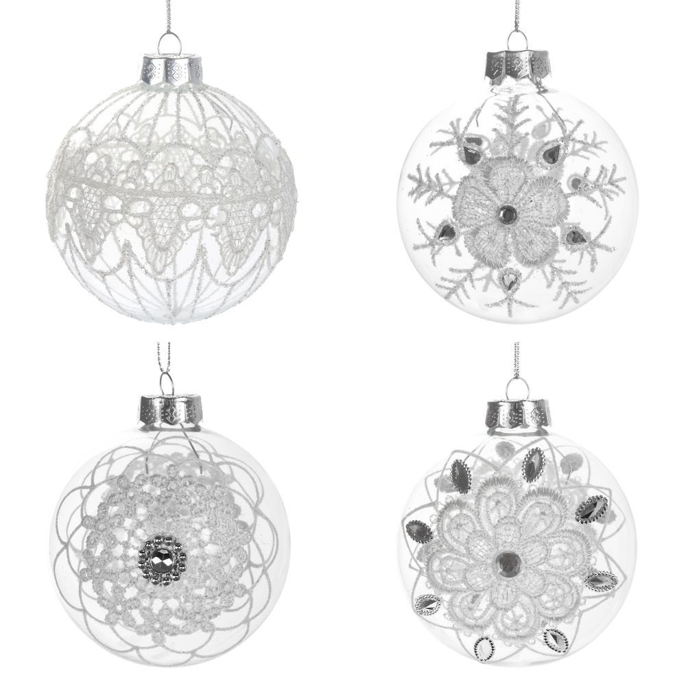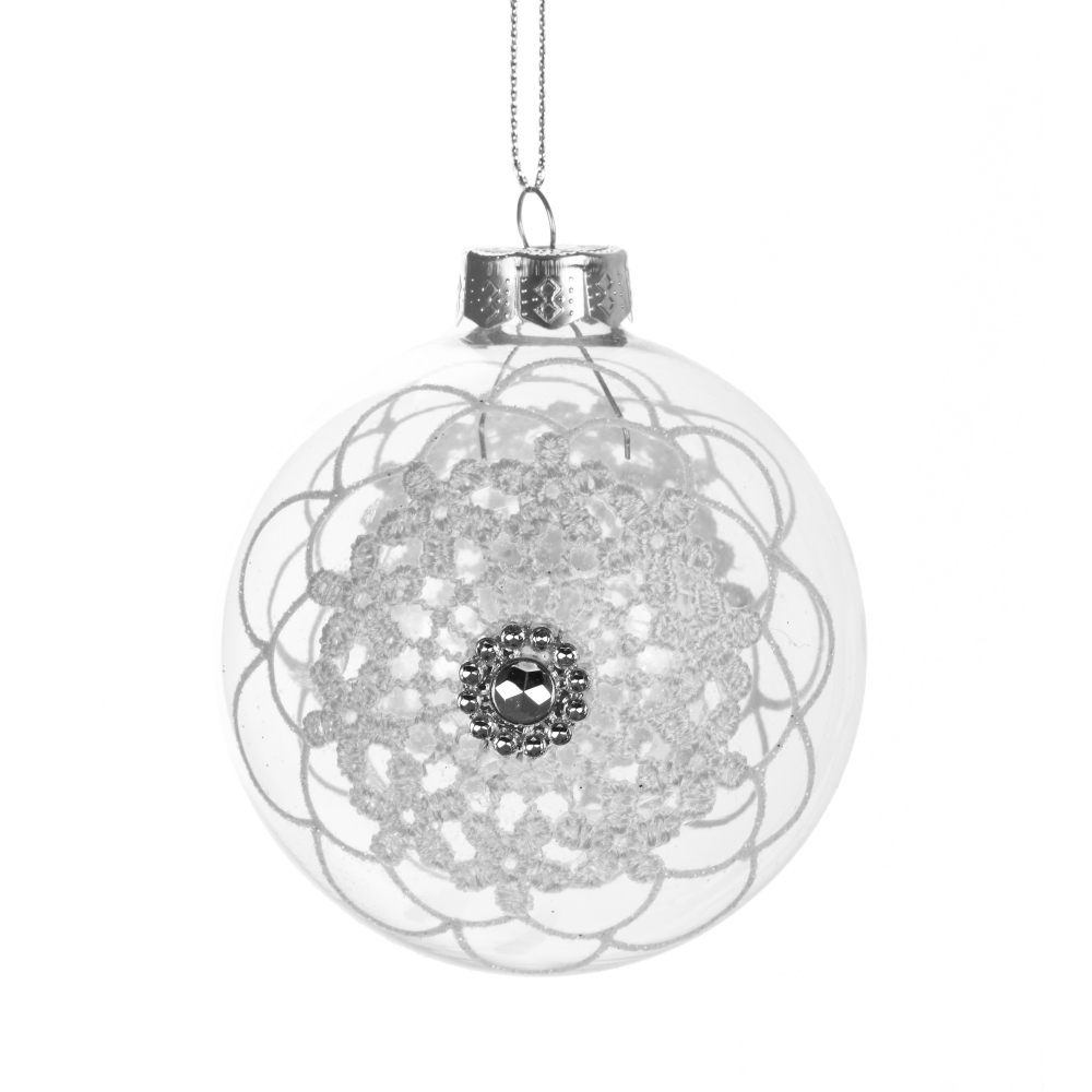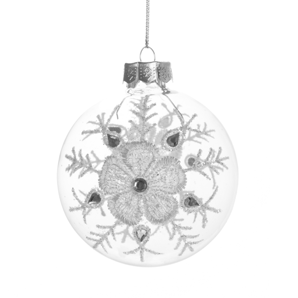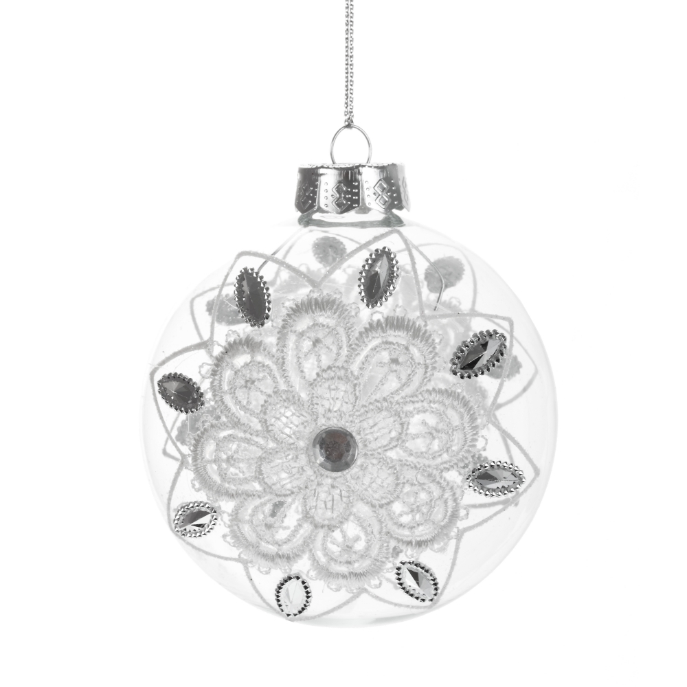 Нежные цветы на этом стеклянном шаре словно вышиты искусной рукодельницей. Именно они придают украшению нотки легкой романтичности. Представлено в четырех вариантах.