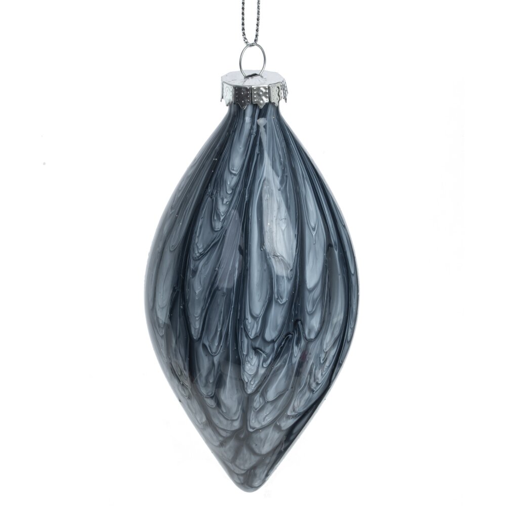 Замечательный стеклянная игрушка с рисунком в виде изящных линий. Прекрасное елочное украшение будет радовать вас все зимние праздники и не один год.