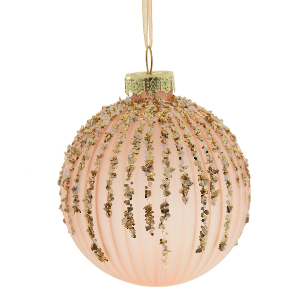 Шар - стеклянное елочное украшение с декором из глиттера. Изделие внесет в образ лесной красавицы частичку сказки.