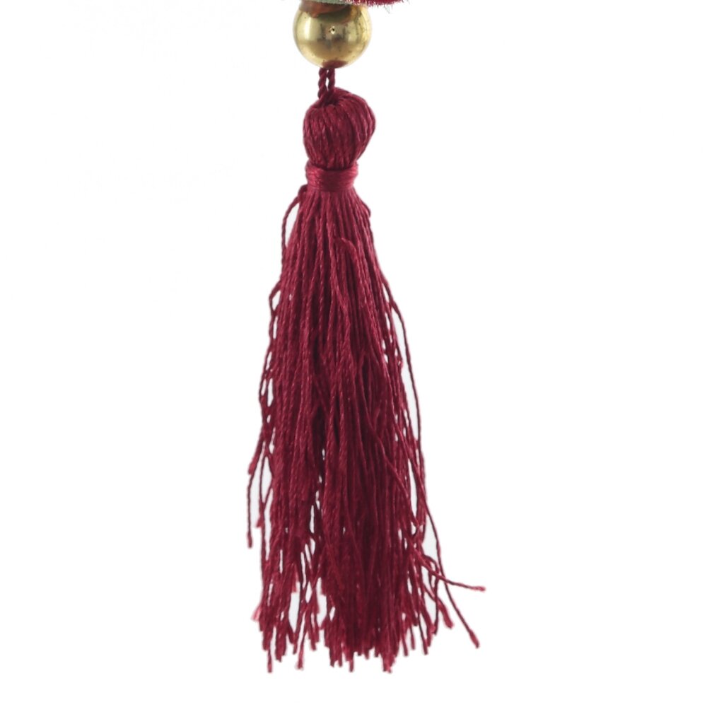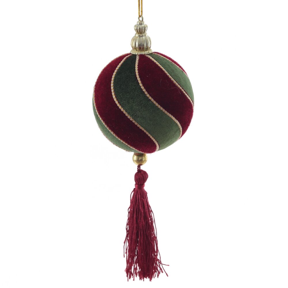 Новогоднее украшение "Шар" - это изящный декор для праздничной атмосферы. Шар выполнен из пенопласта, обтянутого нежным бархатным текстилем. Бордово-зеленые полоски в виде спиралей выделяются золотом, придавая шару элегантный и праздничный вид. Нижняя часть шара дополнена бордовой кисточкой, которая придает ему оригинальность. Это украшение станет прекрасным дополнением к новогоднему интерьеру, добавляя красок и праздничного настроения. Создайте атмосферу уюта и волшебства с этим великолепным новогодним шаром!