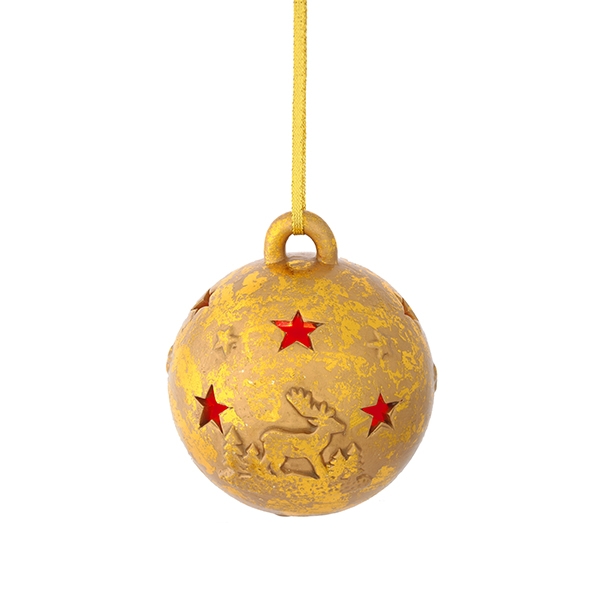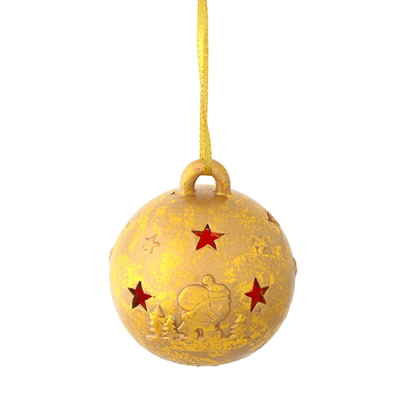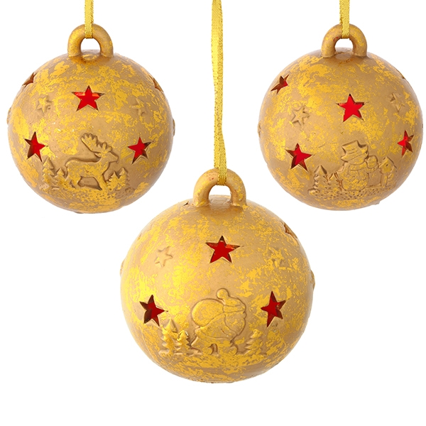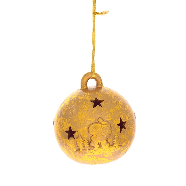 Золотой новогодний елочный шар с подсветкой, изготовлен из керамики. Представлен в трех вариантах.
