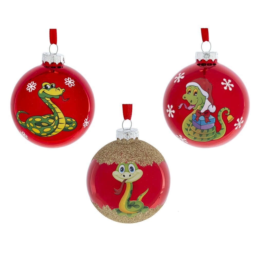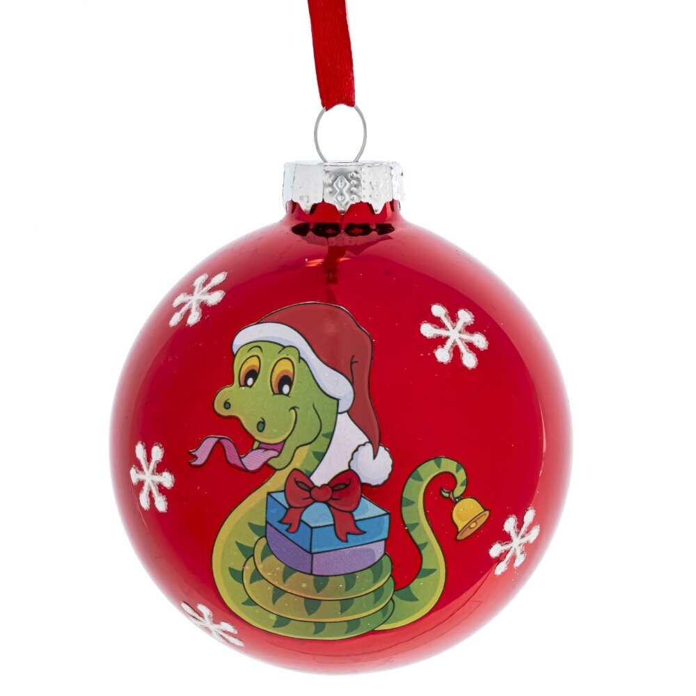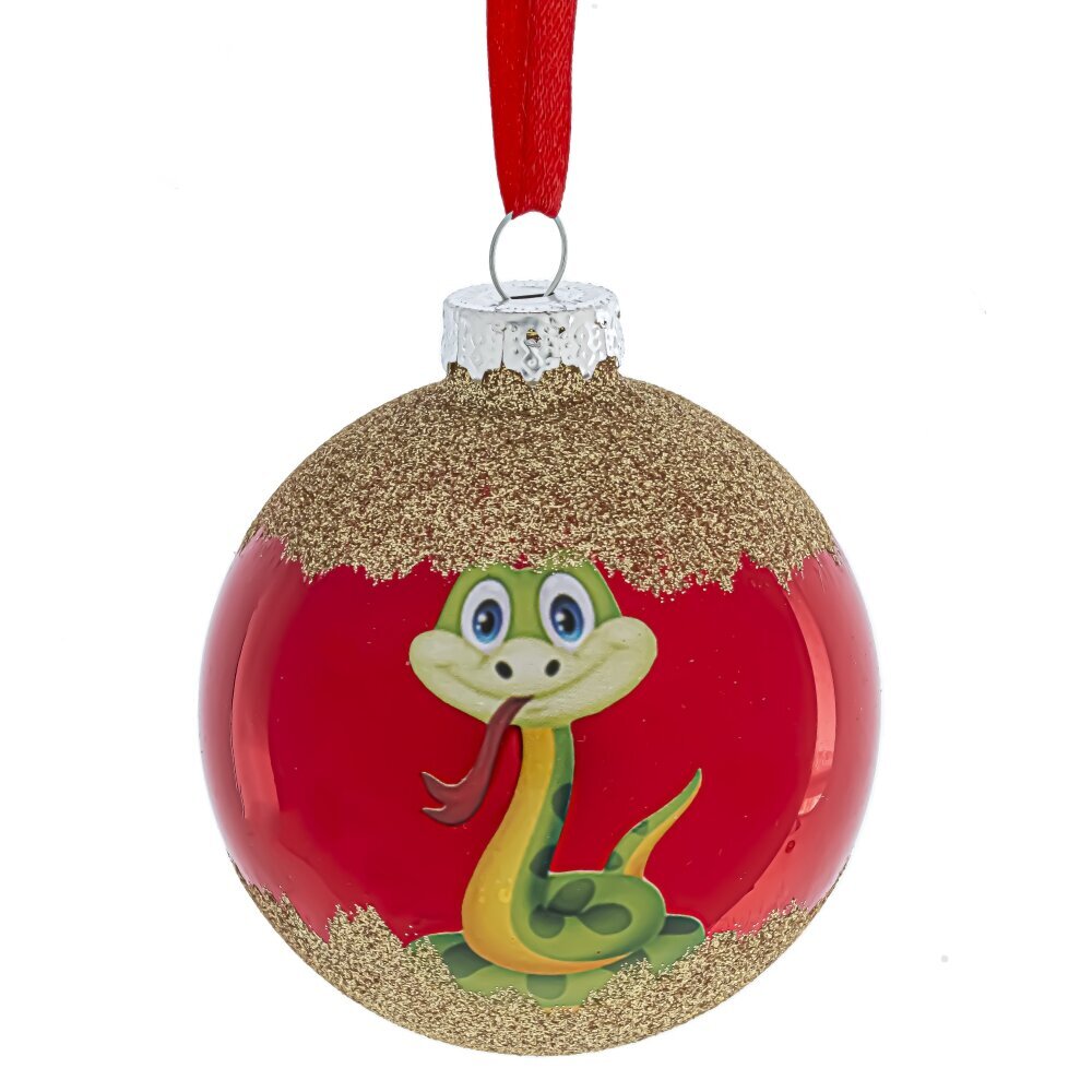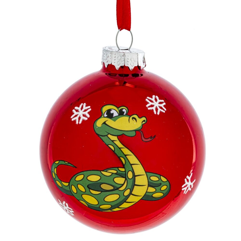 Новогоднее украшение "Шар со змейкой" станет ярким акцентом в праздничном декоре. Шар диаметром 8 см выполнен из качественного стекла в ярко-красном оттенке. Представлен в трех вариантах с изображением веселой змейки - символом года. Они прекрасно дополнят друг друга в декоре. Цена указана за один шар. Не упустите возможность порадовать себя и своих близких стильным новогодним украшением!