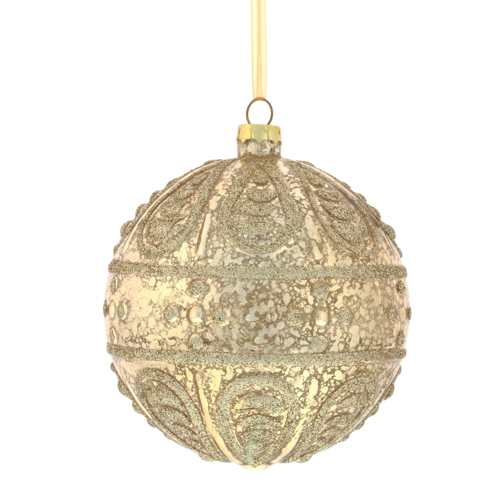 Елочный шар в винтажном стиле с рельефной поверхностью и изящным узором. Прекрасно подойдет для украшения праздничной ели и новогодних композиций. Представлено в двух вариантах.