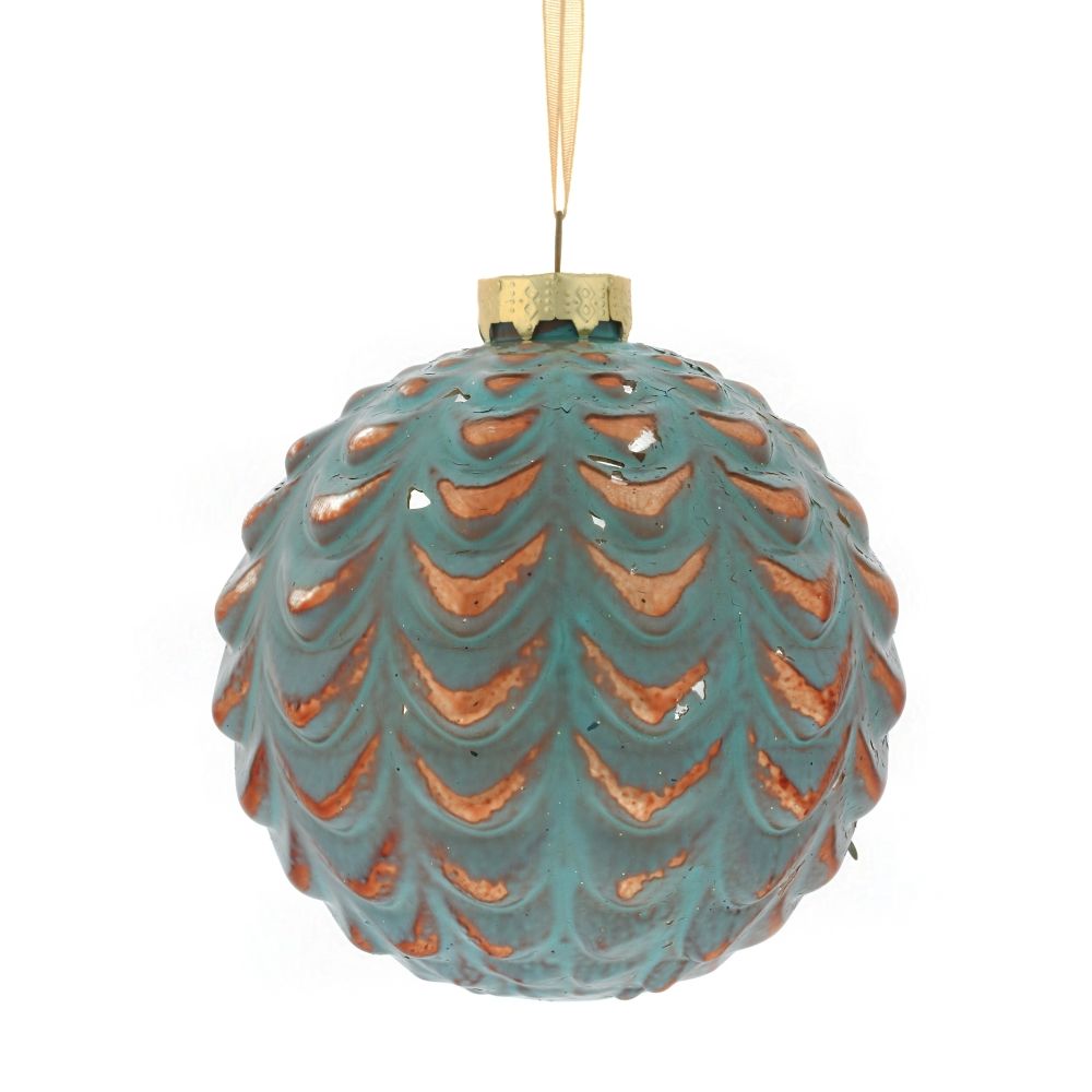 Елочный шар в винтажном стиле с рельефной поверхностью и изящным узором. Прекрасно подойдет для украшения праздничной ели и новогодних композиций.