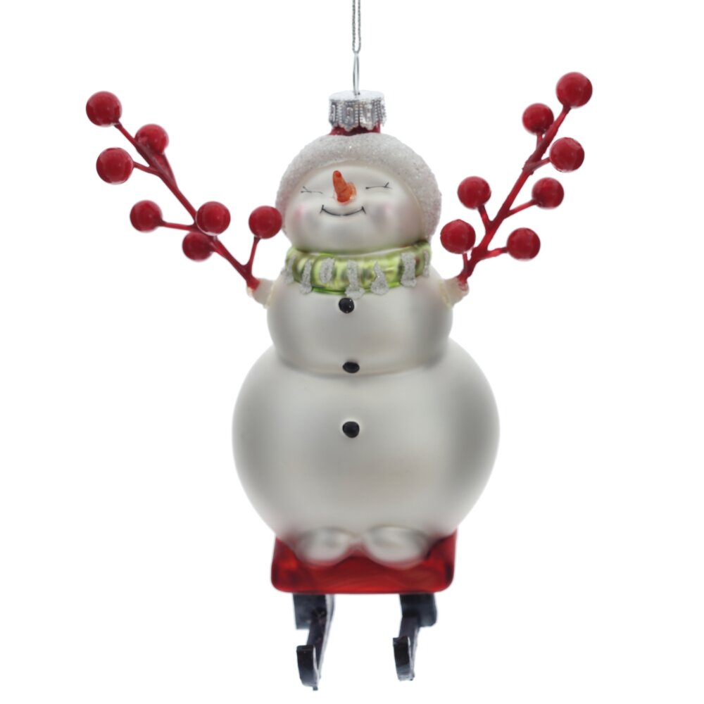 Ёлочное украшение из стекла в виде снеговика выполнено с большим вниманием к деталям и оформлено в праздничной цветовой гамме. . Блестящая поверхность стекла красиво отражает свет гирлянд, создавая эффект мягкого сияния. Очаровательная улыбка снеговика и его уютный образ наполняют пространство атмосферой доброты и зимнего волшебства. Это украшение станет ярким акцентом на новогодней ёлке и подарит радость как детям, так и взрослым.
