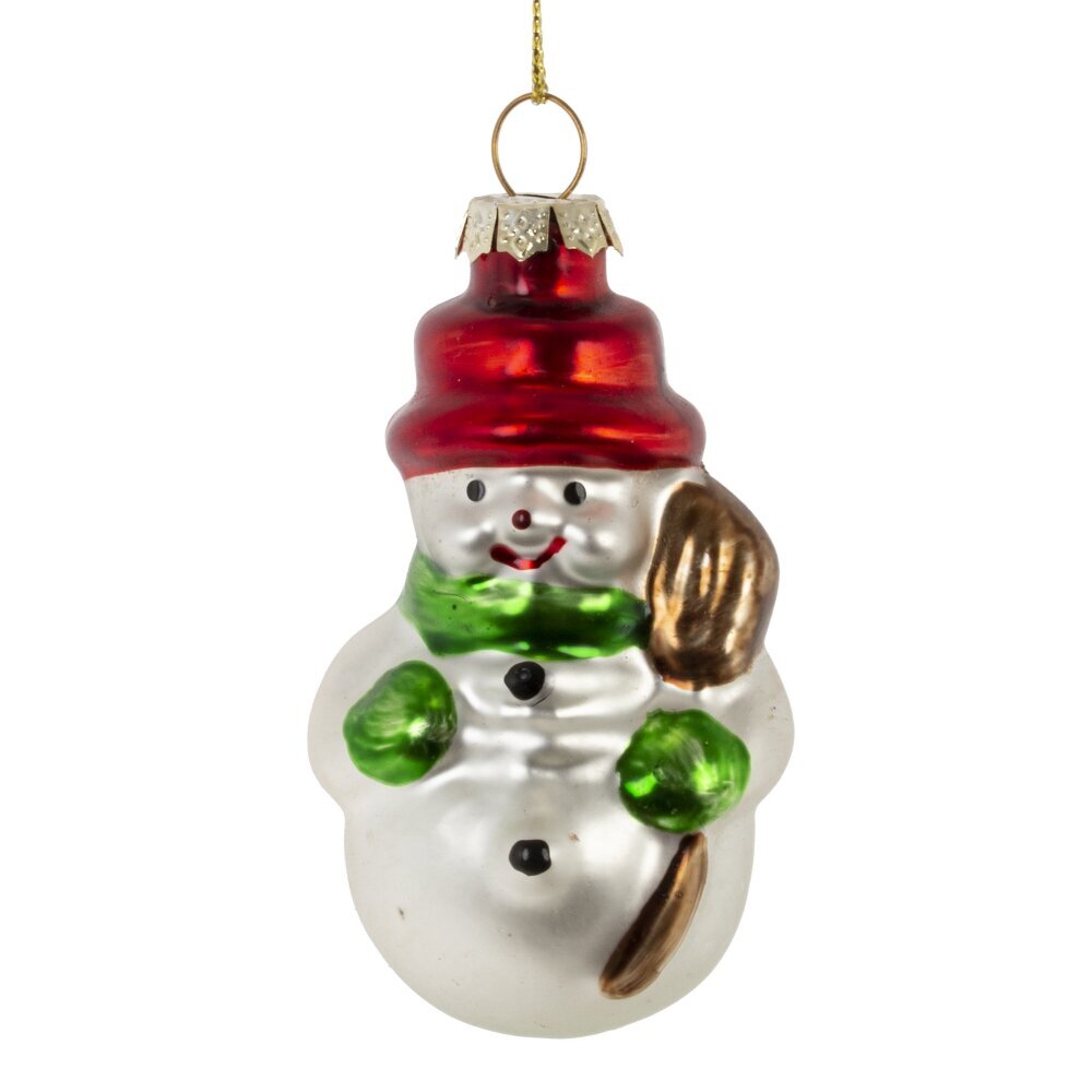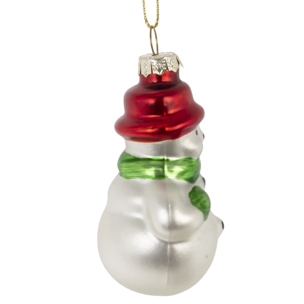 Очаровательное ёлочное украшение в виде снеговика выполнено из стекла . Изделие отличается утончённым дизайном и праздничным блеском, который эффектно переливается в свете гирлянд. Тонкое стекло придаёт игрушке изящество, а цветные акценты добавляют нотку роскоши. Такой снеговик станет ярким украшением новогодней ёлки, создавая атмосферу уюта, тепла и зимней сказки. Идеально подойдёт для классического или современного стиля оформления. Также может стать приятным подарком и пополнением коллекции стеклянных игрушек.