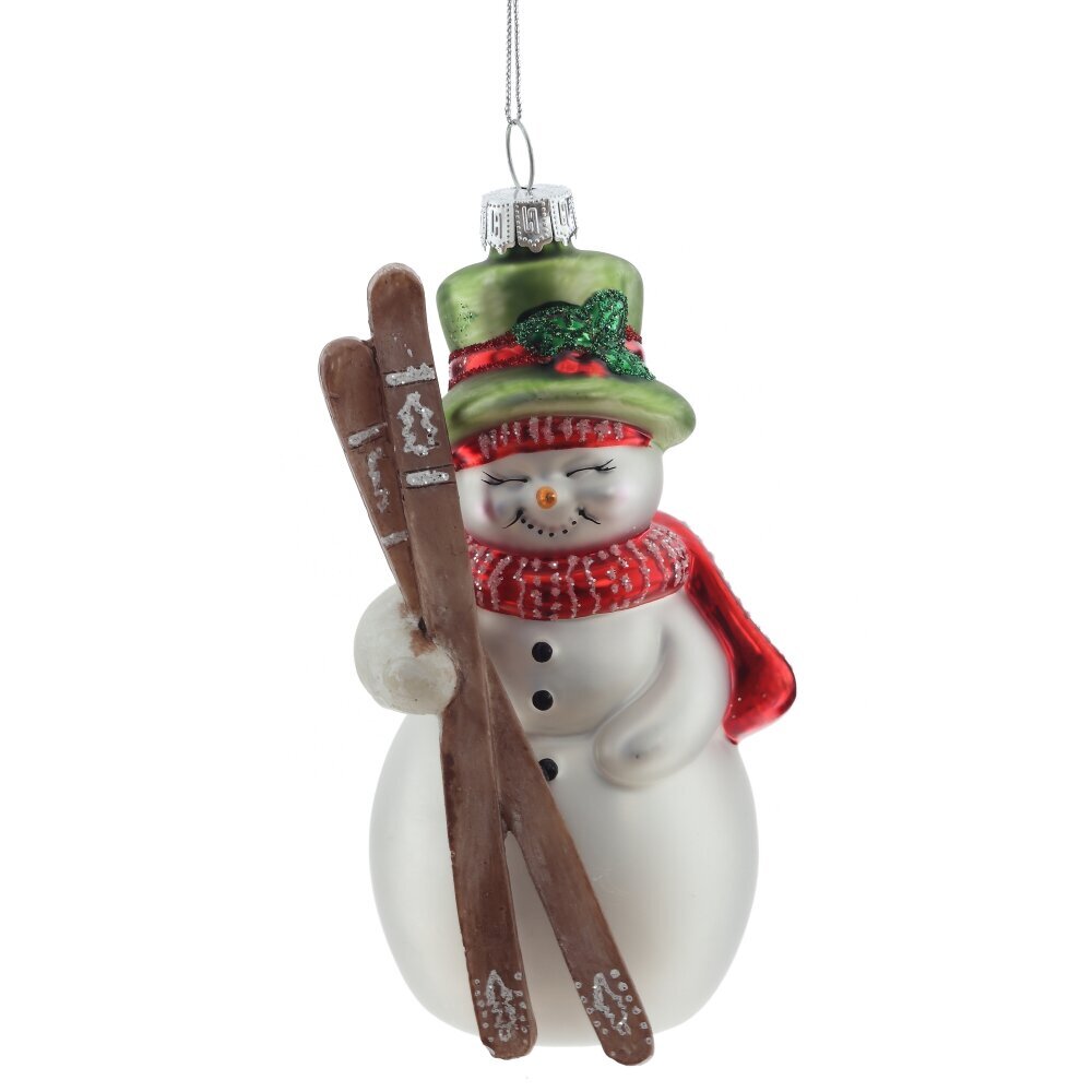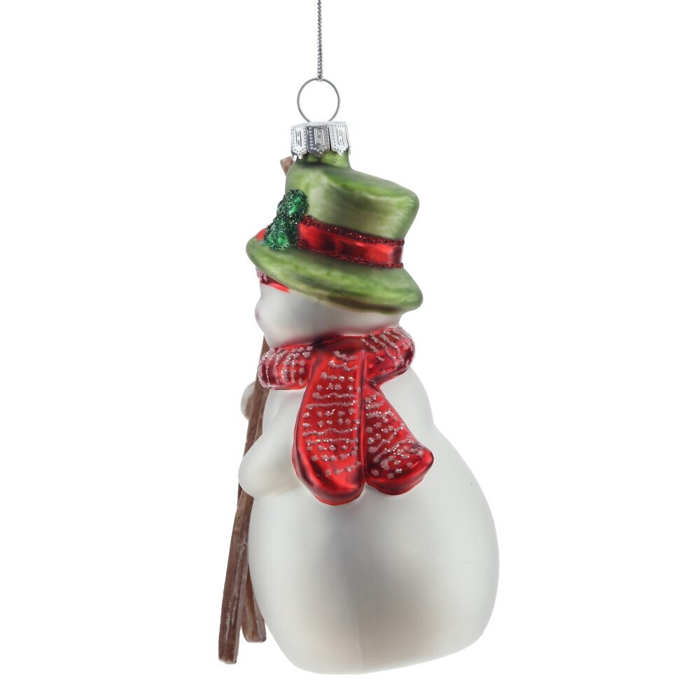 Ёлочное украшение из стекла в виде снеговика выполнено с большим вниманием к деталям и оформлено в праздничной цветовой гамме. . Блестящая поверхность стекла красиво отражает свет гирлянд, создавая эффект мягкого сияния. Очаровательная улыбка снеговика и его уютный образ наполняют пространство атмосферой доброты и зимнего волшебства. Это украшение станет ярким акцентом на новогодней ёлке и подарит радость как детям, так и взрослым.