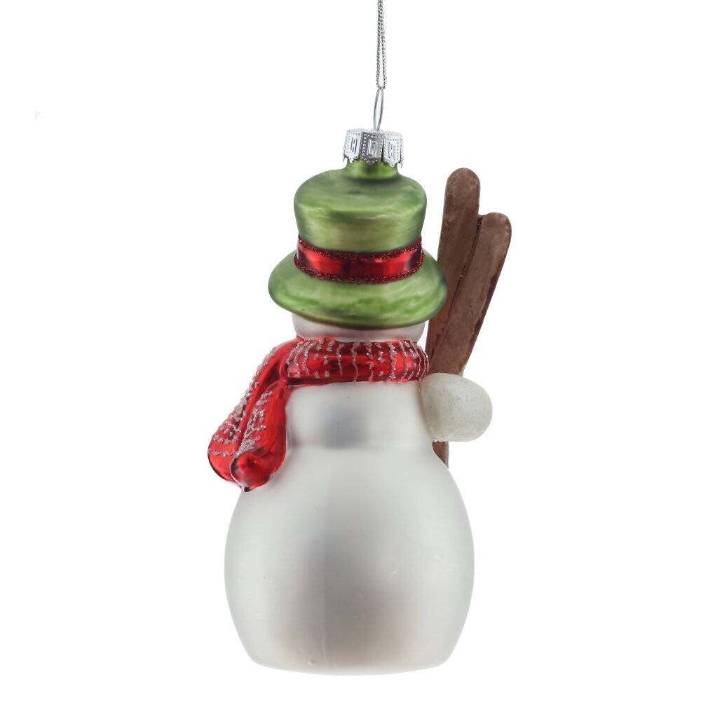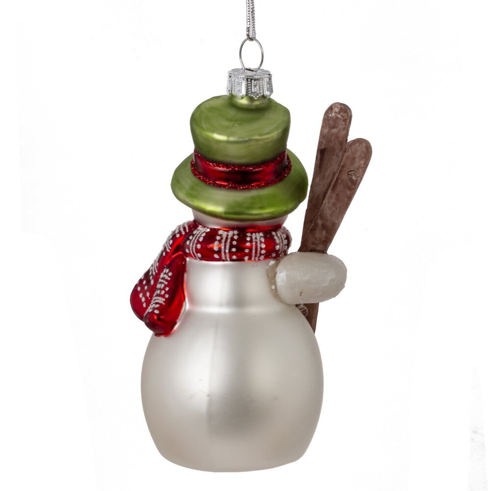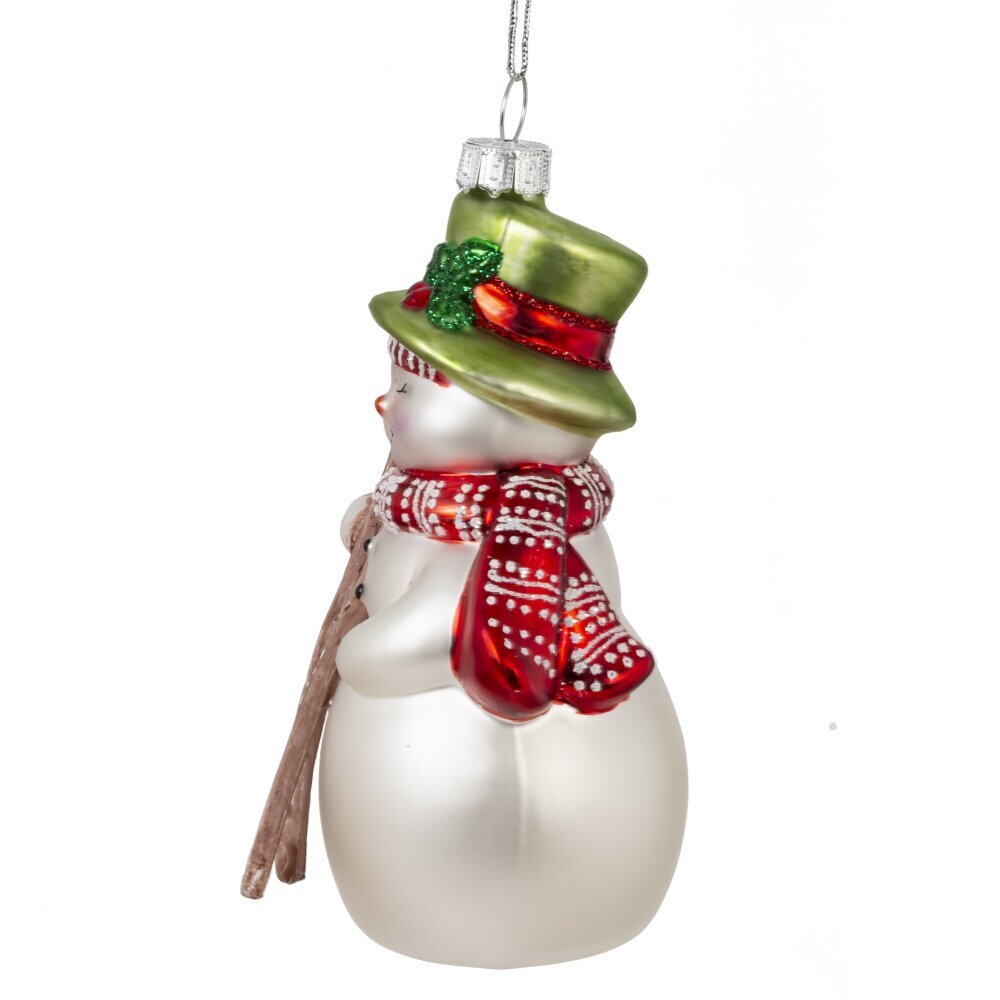 Ёлочное украшение из стекла в виде снеговика выполнено с большим вниманием к деталям и оформлено в праздничной цветовой гамме. . Блестящая поверхность стекла красиво отражает свет гирлянд, создавая эффект мягкого сияния. Очаровательная улыбка снеговика и его уютный образ наполняют пространство атмосферой доброты и зимнего волшебства. Это украшение станет ярким акцентом на новогодней ёлке и подарит радость как детям, так и взрослым.