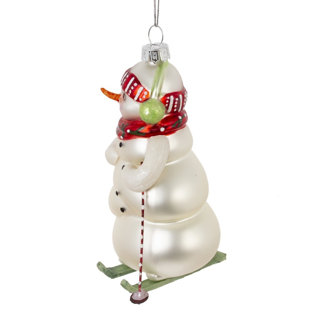 Ёлочное украшение из стекла в виде снеговика выполнено с большим вниманием к деталям и оформлено в праздничной цветовой гамме. . Блестящая поверхность стекла красиво отражает свет гирлянд, создавая эффект мягкого сияния. Очаровательная улыбка снеговика и его уютный образ наполняют пространство атмосферой доброты и зимнего волшебства. Это украшение станет ярким акцентом на новогодней ёлке и подарит радость как детям, так и взрослым.