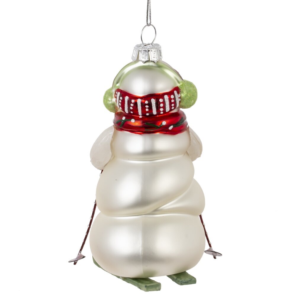Ёлочное украшение из стекла в виде снеговика выполнено с большим вниманием к деталям и оформлено в праздничной цветовой гамме. . Блестящая поверхность стекла красиво отражает свет гирлянд, создавая эффект мягкого сияния. Очаровательная улыбка снеговика и его уютный образ наполняют пространство атмосферой доброты и зимнего волшебства. Это украшение станет ярким акцентом на новогодней ёлке и подарит радость как детям, так и взрослым.