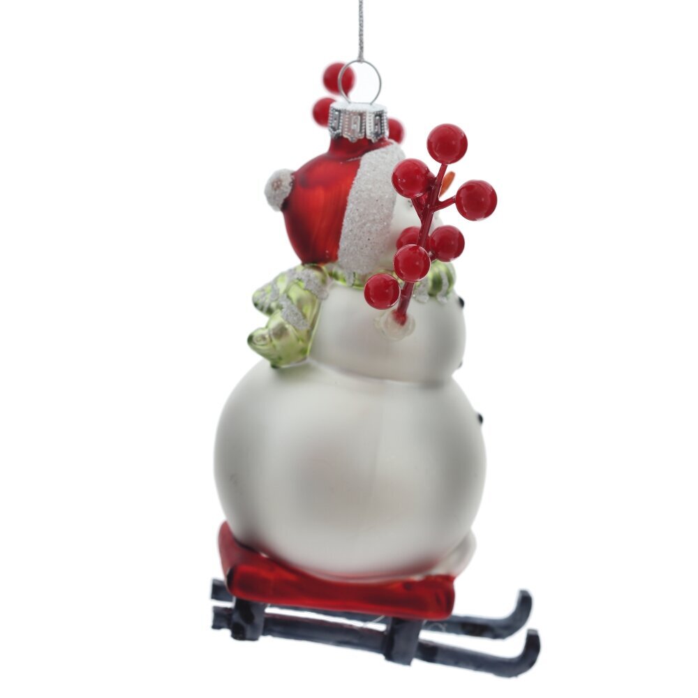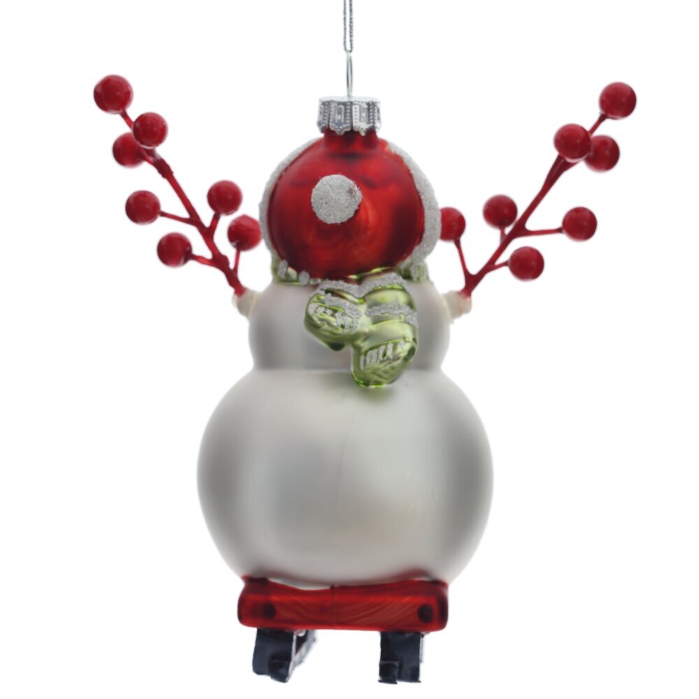Ёлочное украшение из стекла в виде снеговика выполнено с большим вниманием к деталям и оформлено в праздничной цветовой гамме. . Блестящая поверхность стекла красиво отражает свет гирлянд, создавая эффект мягкого сияния. Очаровательная улыбка снеговика и его уютный образ наполняют пространство атмосферой доброты и зимнего волшебства. Это украшение станет ярким акцентом на новогодней ёлке и подарит радость как детям, так и взрослым.