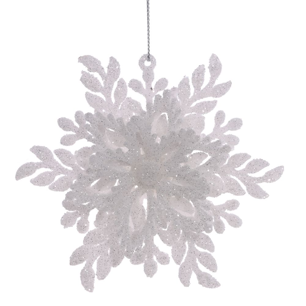 Новогоднее украшение в виде снежинки отлично подойдет для декорации вашего дома и новогодней ели. С помощью специальной петельки игрушку можно подвесить. Такое украшение создаст атмосферу праздника, веселья и радости.