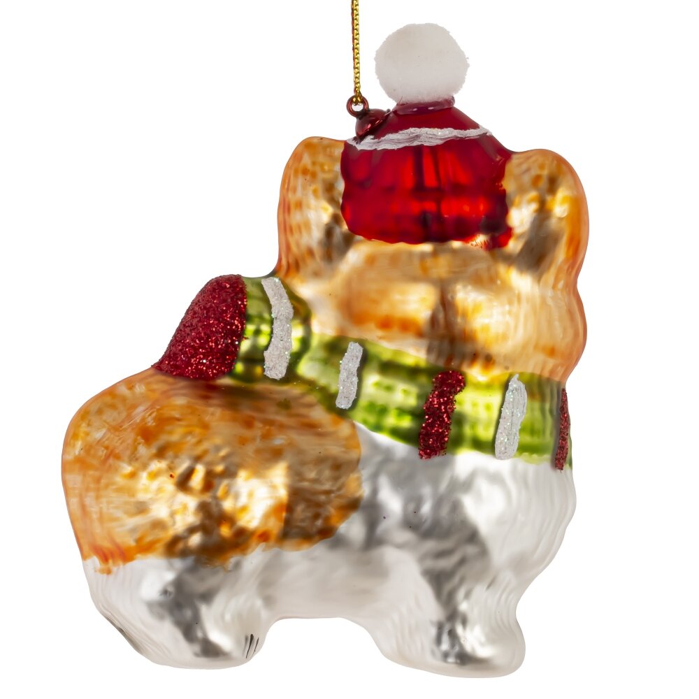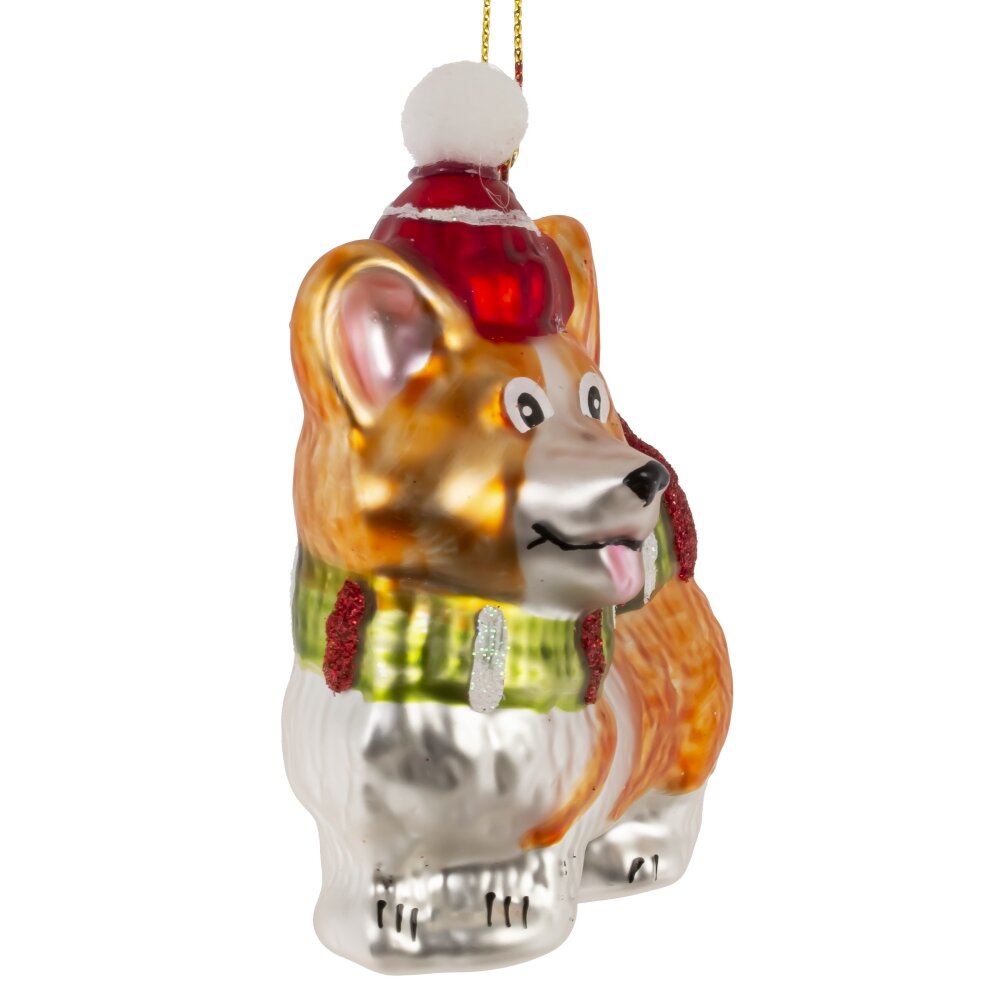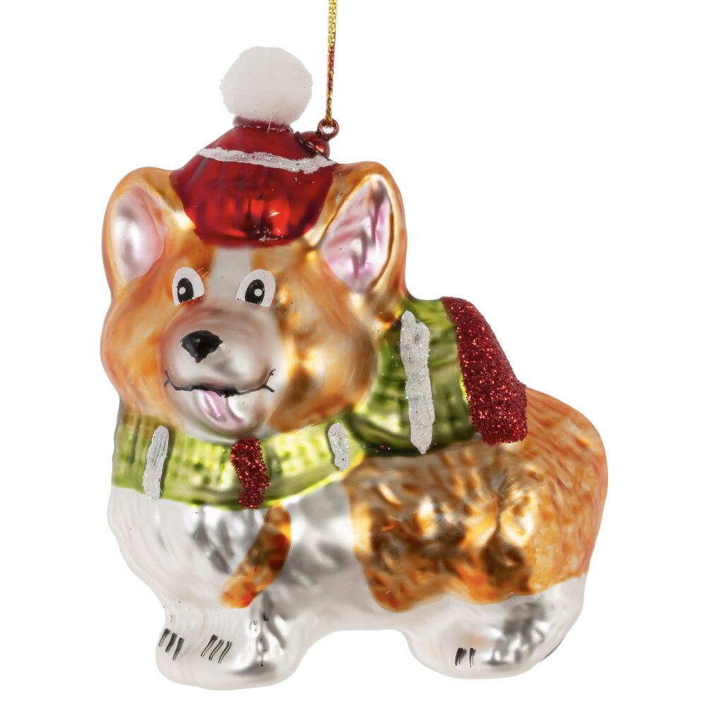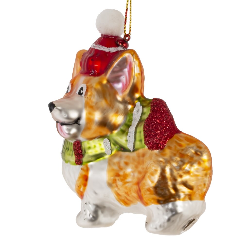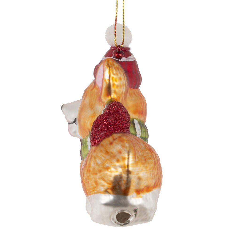 Очаровательное стеклянное елочное украшение — собачка в ярком новогоднем колпачке — подарит вашей ёлке атмосферу уюта, радости и праздничного настроения. Фигурка выполнена с тонкой детализацией: добрые выразительные глаза, пушистые ушки и блестящий колпачок создают трогательный и живой образ. Мерцающий шиммер придаёт украшению волшебное сияние, играя в свете гирлянд. Эта милая собачка станет любимым акцентом на вашей ёлке, а также прекрасным подарком для друзей и близких, напоминая о верности, дружбе и тепле новогодних праздников.