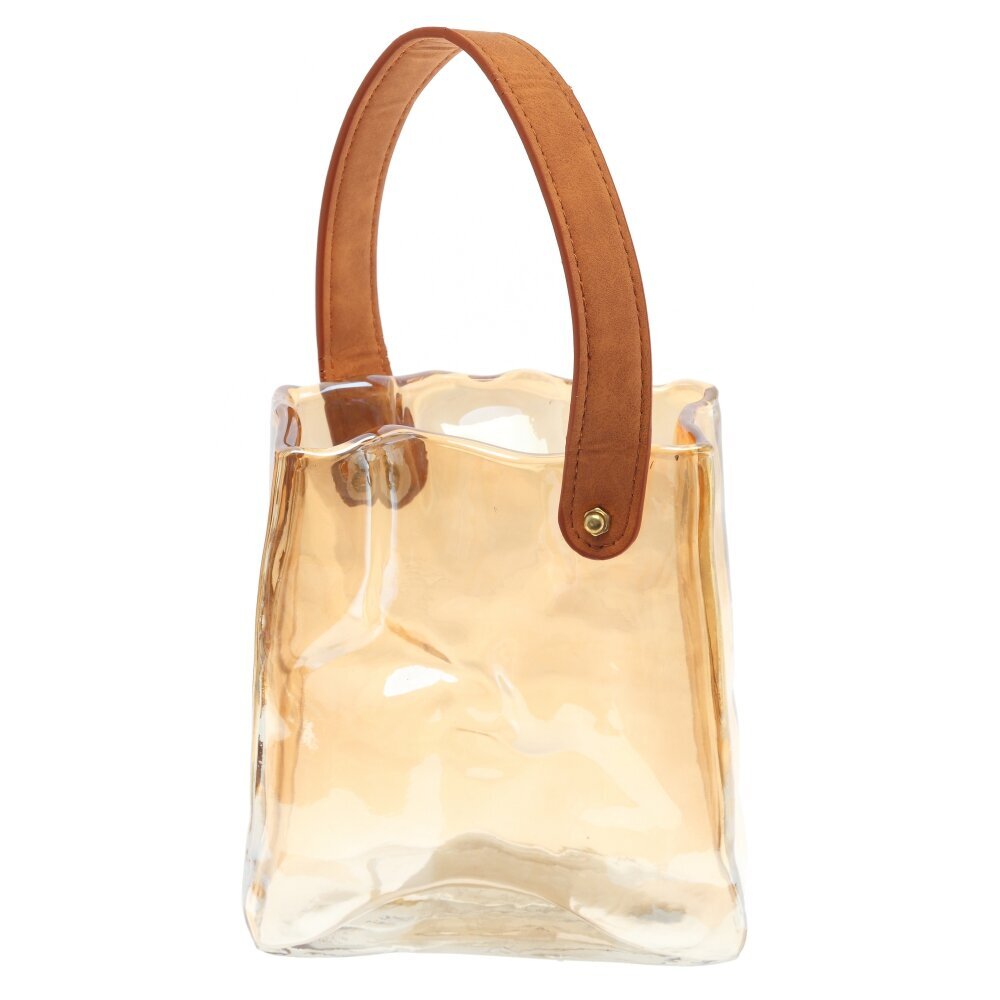Стеклянная ваза в форме сумочки - это стильное дополнение к вашему интерьеру. Ее элегантный дизайн и прозрачность стекла придают ей изысканность, а ручка добавляет нотку оригинальности. Ваза идеально подходит для размещения свежих цветов или сухих букетов, создавая уютную атмосферу и привлекая восхищенные взгляды. Размер горлышка: 11*6 см.