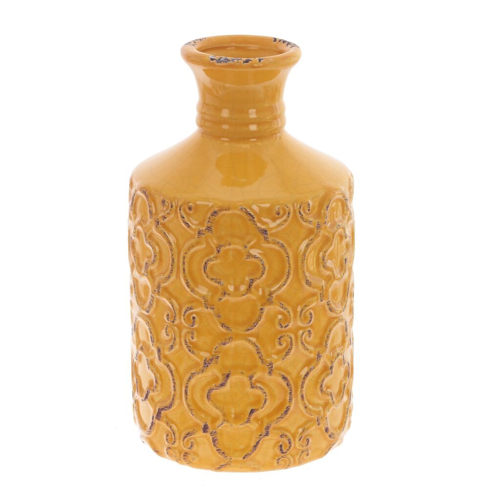 Ваза из фарфора имеет объем 1,7 л и компактные размеры, что делает ее идеальным выбором для размещения на полках, столиках или других узких поверхностях. Она выполнена из качественного фарфора, что придает ей элегантность и изысканность. Ваза имеет привлекательный желтый цвет, который добавляет яркости в любой интерьер. Особенностью этой вазы является рельефный рисунок. Он придает вазе уникальность и привлекательность, делая ее настоящим произведением искусства. Эта ваза станет прекрасным акцентом в вашем интерьере, подчеркивая вашу индивидуальность и художественный вкус. Она идеально подойдет для размещения цветов, веток или декоративных элементов, создавая уютную и стильную атмосферу в вашем доме. Диаметр горлышка: 3 см.