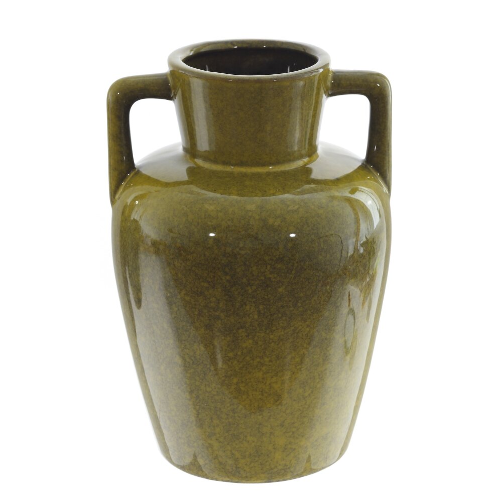 Элегантная ваза из фарфора объемом 2200 мл. Выполнена в благородном оливково-зеленом оттенке с глянцевой глазурью и легким крапчатым эффектом. Форма напоминает амфору: широкое горлышко, плавно расширяющееся тело и две удобные прямоугольные ручки. Устойчивая, с ровным дном и гладкими стенками, которые легко очищаются и не впитывают запахи. Подойдет для живых цветов, веток и сухоцветов, а также как самостоятельный интерьерный акцент. Нейтральный цвет гармонирует с минималистичными, эко и ретро интерьерами, подчеркивает природные оттенки букетов. Объем 2,2 л обеспечивает достаточный запас воды для средних и крупных композиций. Отличный выбор для дома, офиса или в качестве подарка.