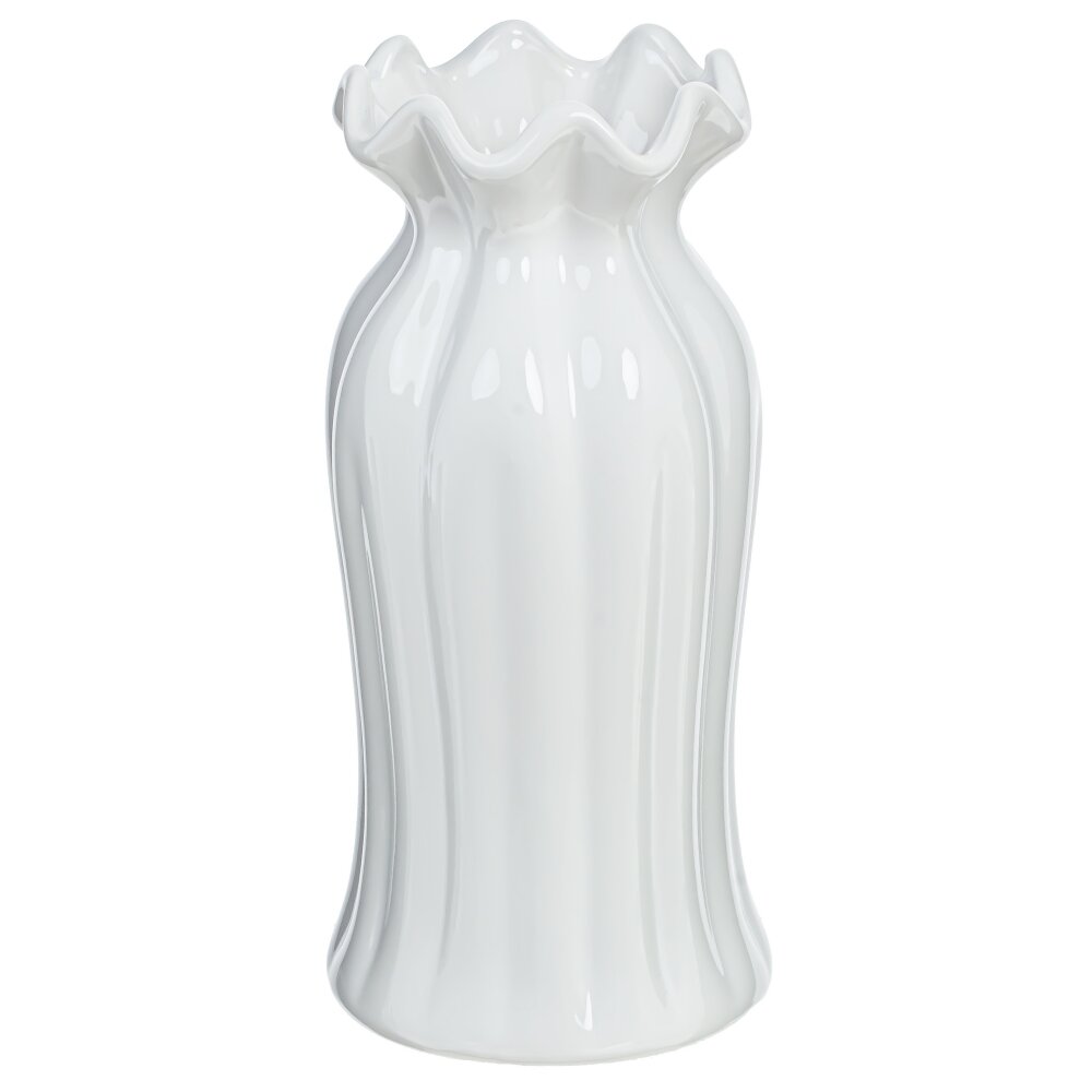 Эта изящная ваза из фарфора объемом 700 мл привносит в ваш интерьер легкость и воздушность. Чистый белый цвет, словно свежий снежный покров, создает атмосферу спокойствия и гармонии в любом пространстве. Волнистый верхний край придает вазе оригинальность, обрамляя её как нежное облако, которое хочется тронуть. Эта ваза станет идеальным холстом для ваших цветочных композиций, подчеркивая красоту живых цветов и свежесть зелени. Легкость и элегантность формы гармонично объединяются с качеством материала, что делает её не только эстетически привлекательной, но и долговечной. Она станет изысканным акцентом на столе, каминной полке или в витрине, добавляя нотку утонченного стиля в ваш дом. Стремясь создать уютное и красивое пространство, нельзя забывать о таких мелочах — и эта ваза станет как раз тем элементом, который вы искали. Диаметр горловины: 4 см.