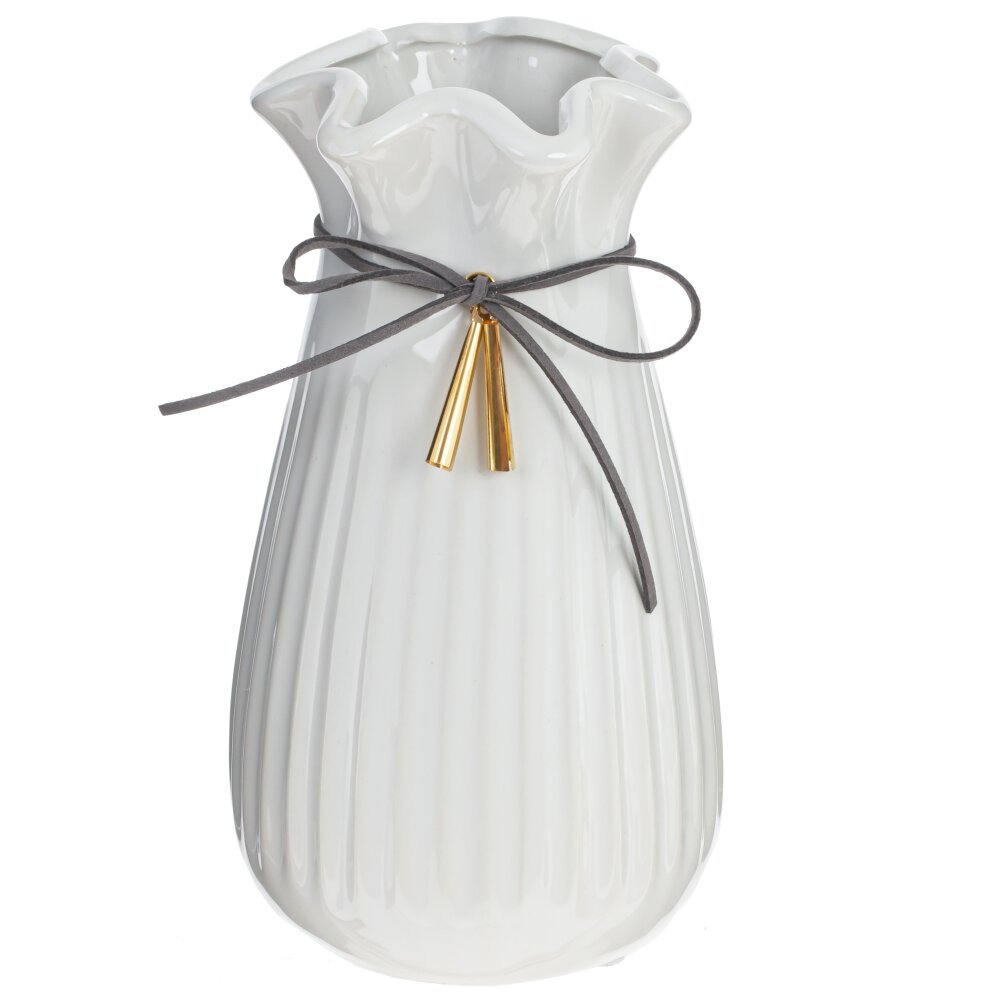 Ваза оригинальной формы, выполнена из фарфора, очень красиво будет смотреться с букетом цветов или как самостоятельный элемент декора. Стильная ваза может быть отличным подарком для женщины в День рождения или юбилей. Диаметр горлышка: 5 см.