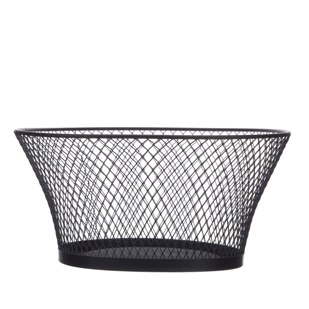 Стильная ваза для фруктов из металла в виде открытой сетчатой корзины. Выполнена в лаконичном чёрном цвете и идеально вписывается в современный интерьер кухни или гостиной: лофт, минимализм, скандинавский стиль. Прочная металлическая сетка обеспечивает хорошую циркуляцию воздуха, благодаря чему фрукты и овощи дольше остаются свежими. Устойчивое сплошное дно предотвращает выпадение мелких продуктов и надёжно держит содержимое. Изделие легко очищается, не впитывает запахи и не деформируется при ежедневном использовании.