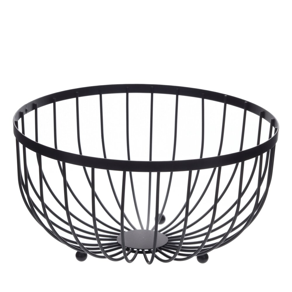 Стильная ваза для фруктов из металла – лаконичное решение для современной кухни или гостиной. Изделие выполнено из прочных металлических прутьев с матовым черным покрытием, благодаря чему выглядит аккуратно и элегантно, легко вписывается как в современный минимализм, так и в классический интерьер. Открытая проволочная конструкция обеспечивает хорошую циркуляцию воздуха, что помогает фруктам дольше оставаться свежими и аппетитными. Широкое устойчивое дно гарантирует надежное положение на столе или кухонной столешнице. Простая в уходе: достаточно протереть влажной салфеткой. Отличный вариант для ежедневного использования и сервировки праздничного стола.