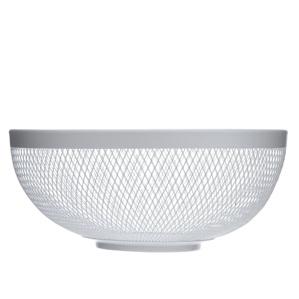 Стильная ваза для фруктов из металла в виде открытой сетчатой корзины. Выполнена в лаконичном белом цвете и идеально вписывается в современный интерьер кухни или гостиной: лофт, минимализм, скандинавский стиль. Прочная металлическая сетка обеспечивает хорошую циркуляцию воздуха, благодаря чему фрукты и овощи дольше остаются свежими. Устойчивое сплошное дно предотвращает выпадение мелких продуктов и надёжно держит содержимое. Изделие легко очищается, не впитывает запахи и не деформируется при ежедневном использовании.