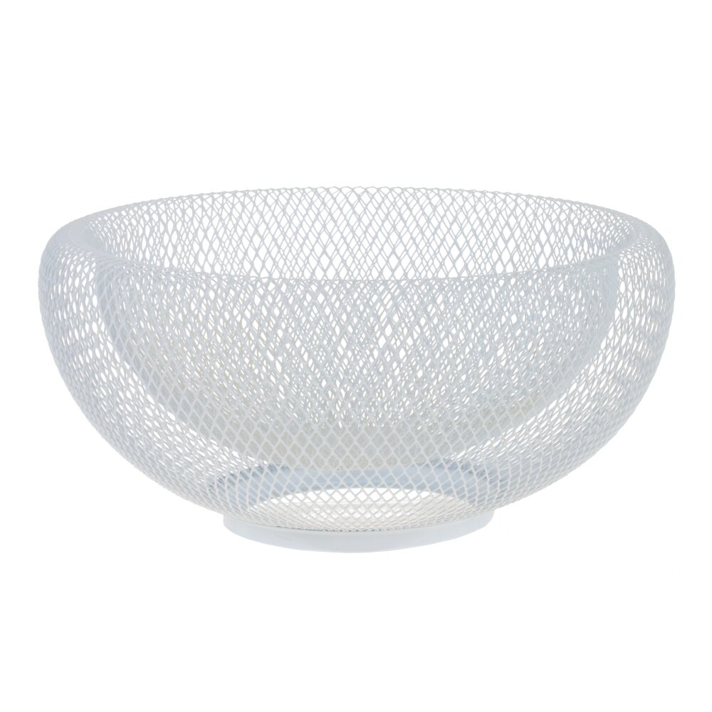Стильная ваза для фруктов из металла в виде открытой сетчатой корзины. Выполнена в лаконичном белом цвете и идеально вписывается в современный интерьер кухни или гостиной: лофт, минимализм, скандинавский стиль. Прочная металлическая сетка обеспечивает хорошую циркуляцию воздуха, благодаря чему фрукты и овощи дольше остаются свежими. Устойчивое сплошное дно предотвращает выпадение мелких продуктов и надёжно держит содержимое. Изделие легко очищается, не впитывает запахи и не деформируется при ежедневном использовании.