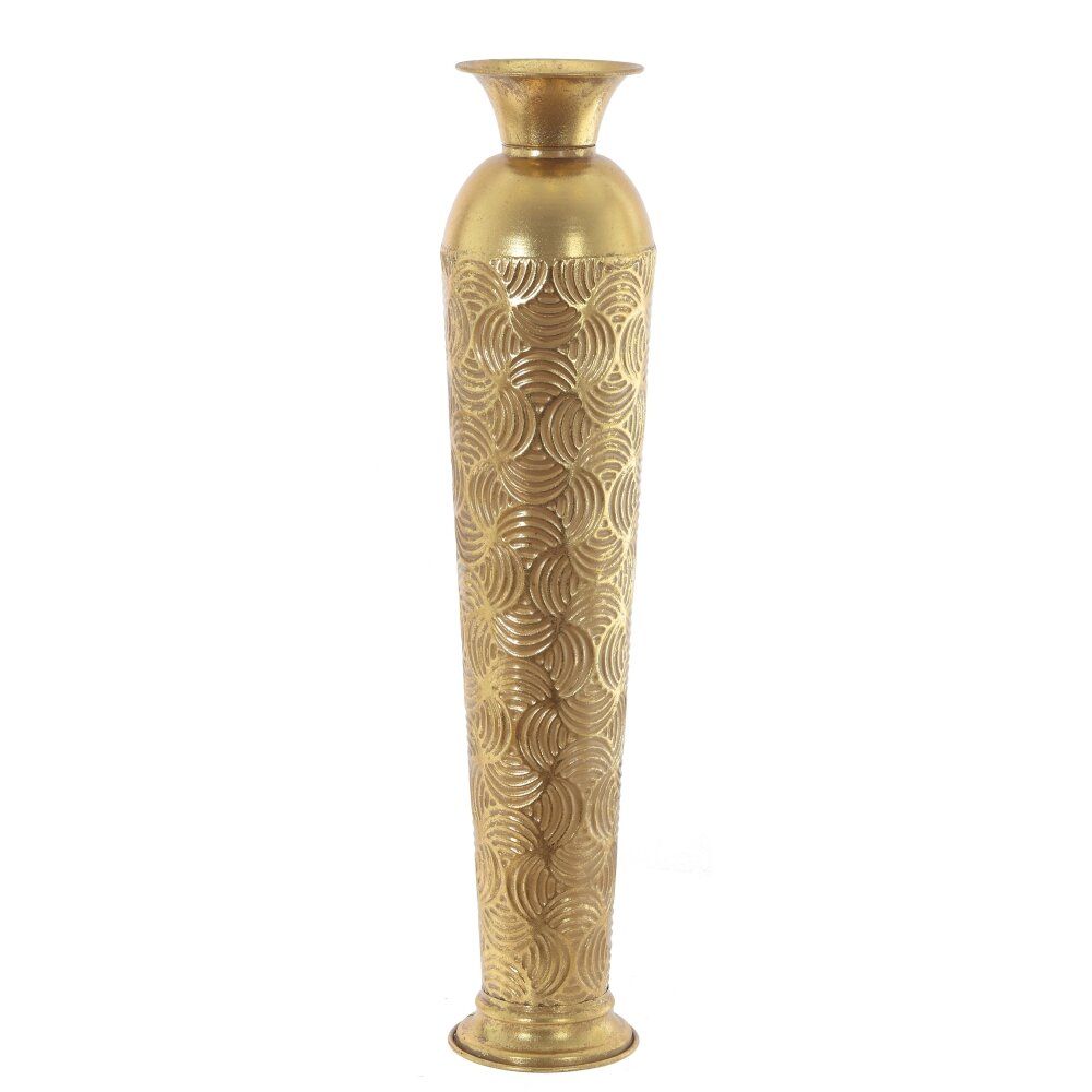 Эта изысканная ваза для искусственных цветов станет ярким акцентом любого интерьера. Изделие выполнено из прочного металла и окрашено в элегантный золотистый цвет, что придаёт ему роскошный и стильный вид. Высота вазы составляет 65 см, а диаметр — 13,5 см, что делает её подходящей для размещения на полу. Благодаря вытянутой форме и устойчивому основанию, ваза отлично подходит для длинных декоративных ветвей и искусственных цветов. Поверхность украшена рельефным узором в виде переплетающихся кругов, который придаёт дополнительный шарм и оригинальность. Такая ваза гармонично впишется в современные и классические интерьеры, подчеркнув их индивидуальность и изысканность. Это удачный выбор для создания праздничной атмосферы или стильного акцента в гостиной, холле или офисе.