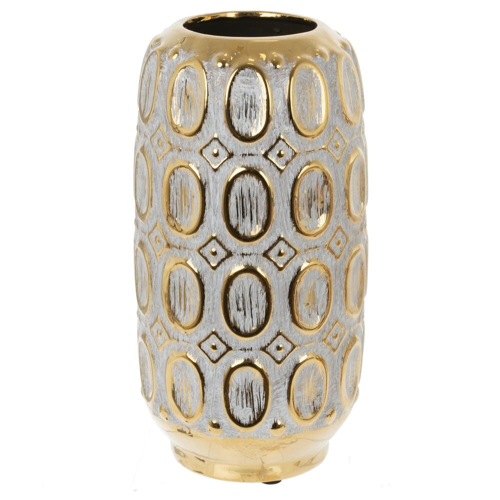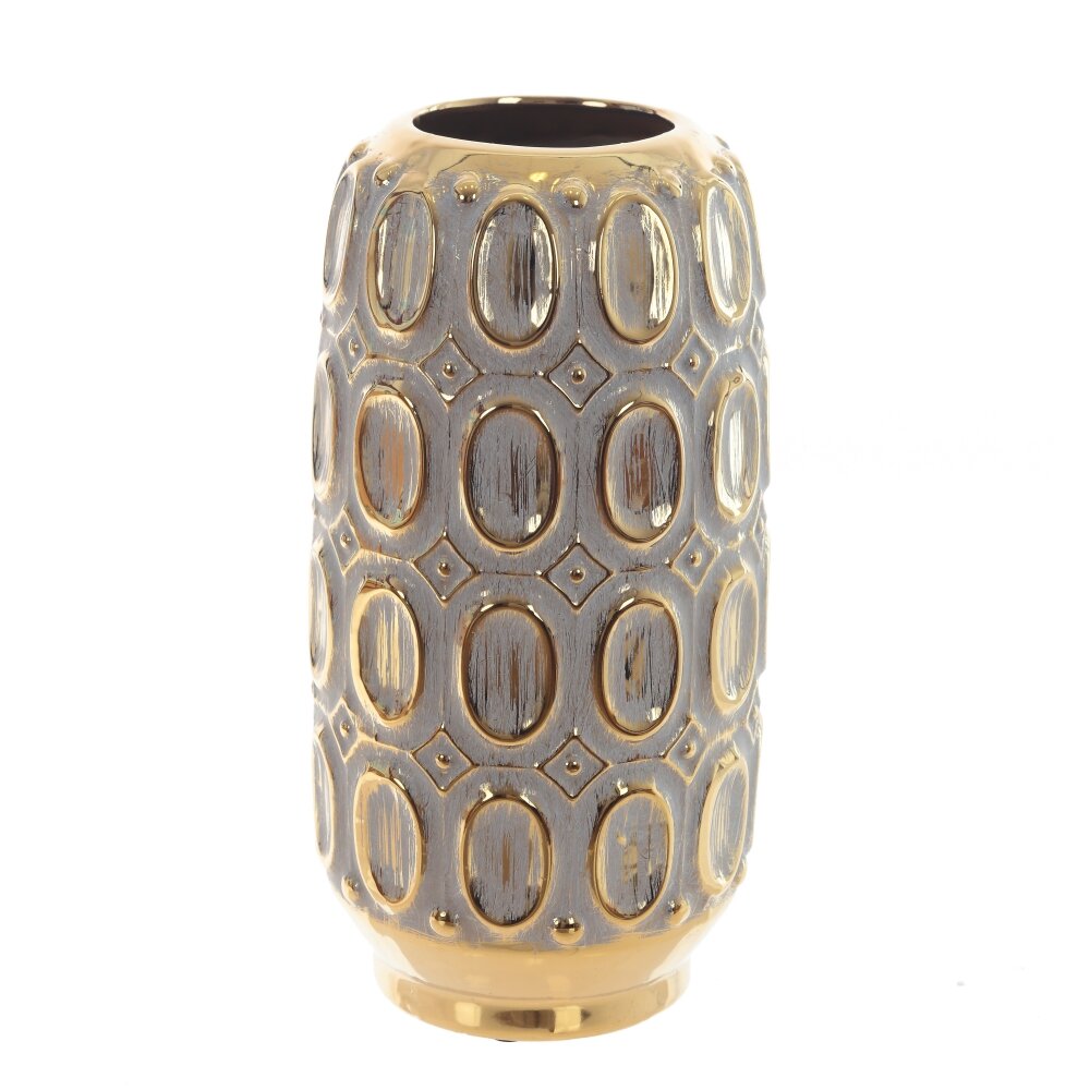 Эта роскошная ваза из фарфора станет истинным украшением вашего интерьера. Её изысканная форма и блестящие детали создают эффектный акцент в любом пространстве, привнося нотку элегантности. Золотой узор играет на свету, придавая вазе ауру волшебства и шарма. Она не только прекрасно подходит для размещения живых цветов, но и сможет служить стильным декором, даже когда пустая. Великолепное сочетание классического стиля и современного дизайна делает эту вазу универсальным элементом для любых интерьеров — от традиционного до минималистичного. Поставьте её на стол, полку или каминную полку, и вы увидите, как она мгновенно преобразит любое помещение. Эта ваза станет не только оригинальным дополнением вашего жизненного пространства, но и замечательным подарком для близких, способным подчеркнуть вашу заботу и внимание к деталям. Диаметр горловины: 7 см.