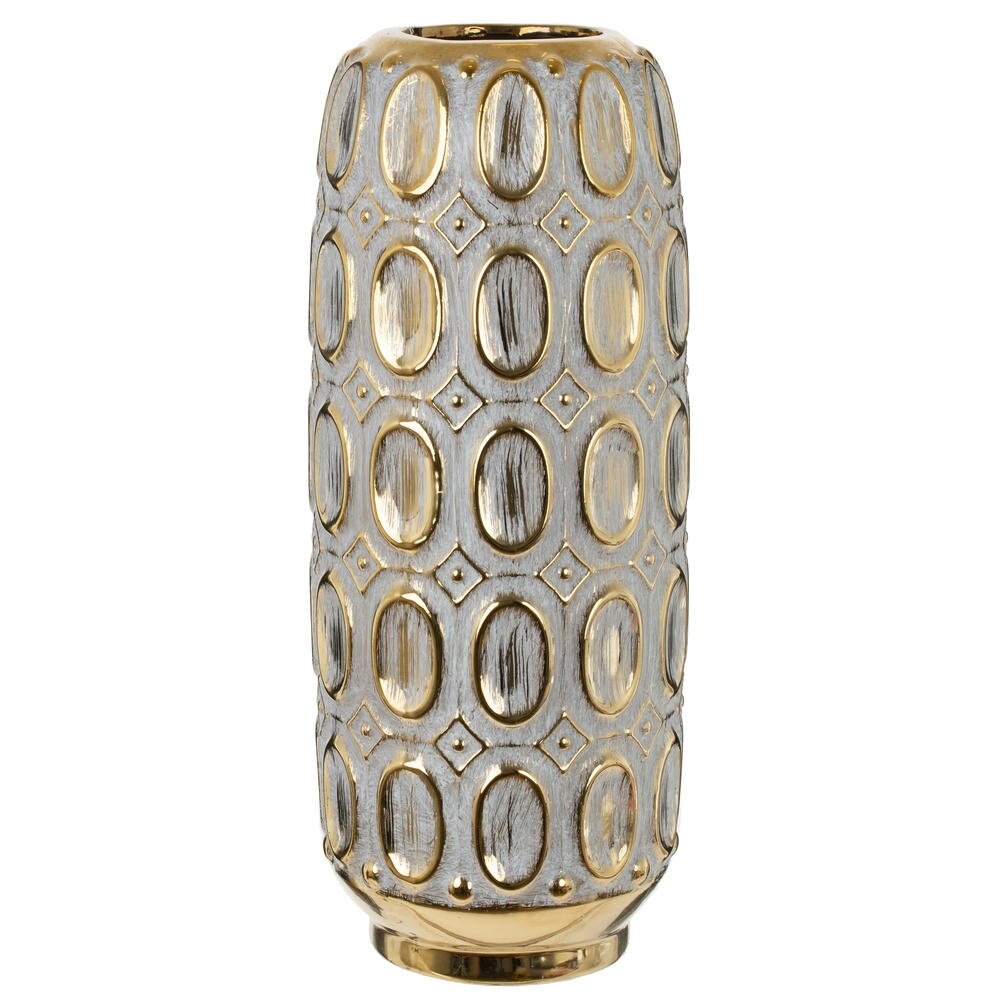 Эта роскошная ваза из фарфора станет истинным украшением вашего интерьера. Её изысканная форма и блестящие детали создают эффектный акцент в любом пространстве, привнося нотку элегантности. Золотой узор играет на свету, придавая вазе ауру волшебства и шарма. Она не только прекрасно подходит для размещения живых цветов, но и сможет служить стильным декором, даже когда пустая. Великолепное сочетание классического стиля и современного дизайна делает эту вазу универсальным элементом для любых интерьеров — от традиционного до минималистичного. Поставьте её на стол, полку или каминную полку, и вы увидите, как она мгновенно преобразит любое помещение. Эта ваза станет не только оригинальным дополнением вашего жизненного пространства, но и замечательным подарком для близких, способным подчеркнуть вашу заботу и внимание к деталям. Диаметр горловины: 6.5 см.