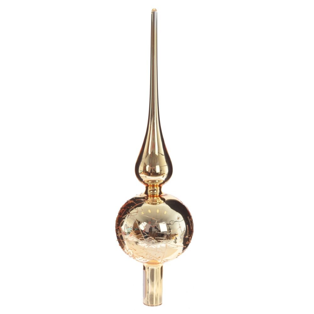 Эта классическая елочная верхушка из стекла станет изюминкой вашего новогоднего декора. Она выполнена в золотом цвете и украшена нежными узорами линий, что придает ей особую элегантность и шарм. Сияющие отражения света на поверхности придадут вашему рождественскому дереву дополнительный блеск и праздничное настроение. Идеальная макушечка для любого праздничного дерева, она станет символом волшебства и радости в этот особенный сезон.