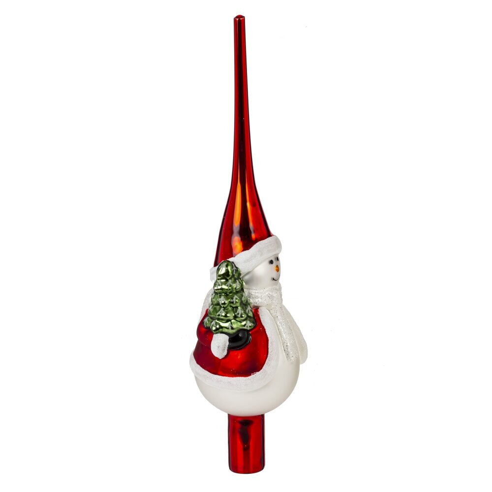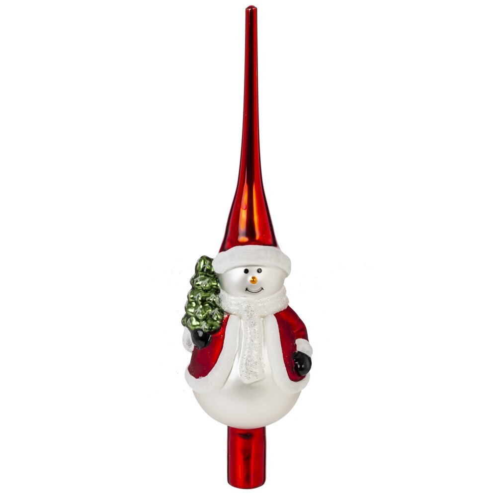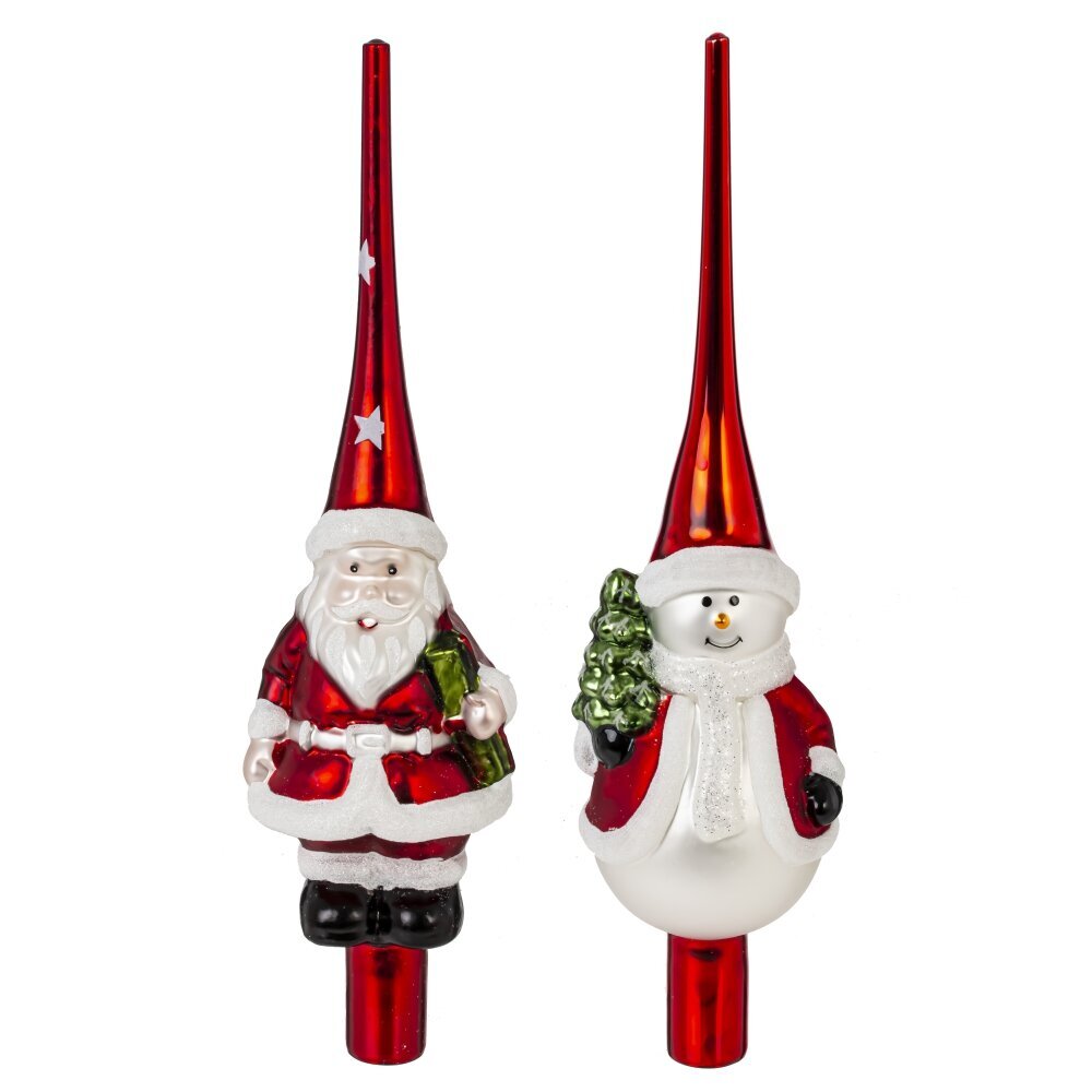 Верхушка на ёлку в виде Снеговика и Деда Мороза из стекла в ярко-красном цвете — это роскошное украшение, которое добавит особого шарма и элегантности вашей новогодней красавице. Стеклянная поверхность, переливаясь, создаёт эффект зимнего сияния. Эта верхушка станет великолепным завершением вашей ёлки, а её изысканный внешний вид прекрасно сочетается с любыми цветами и стилями новогоднего оформления.
