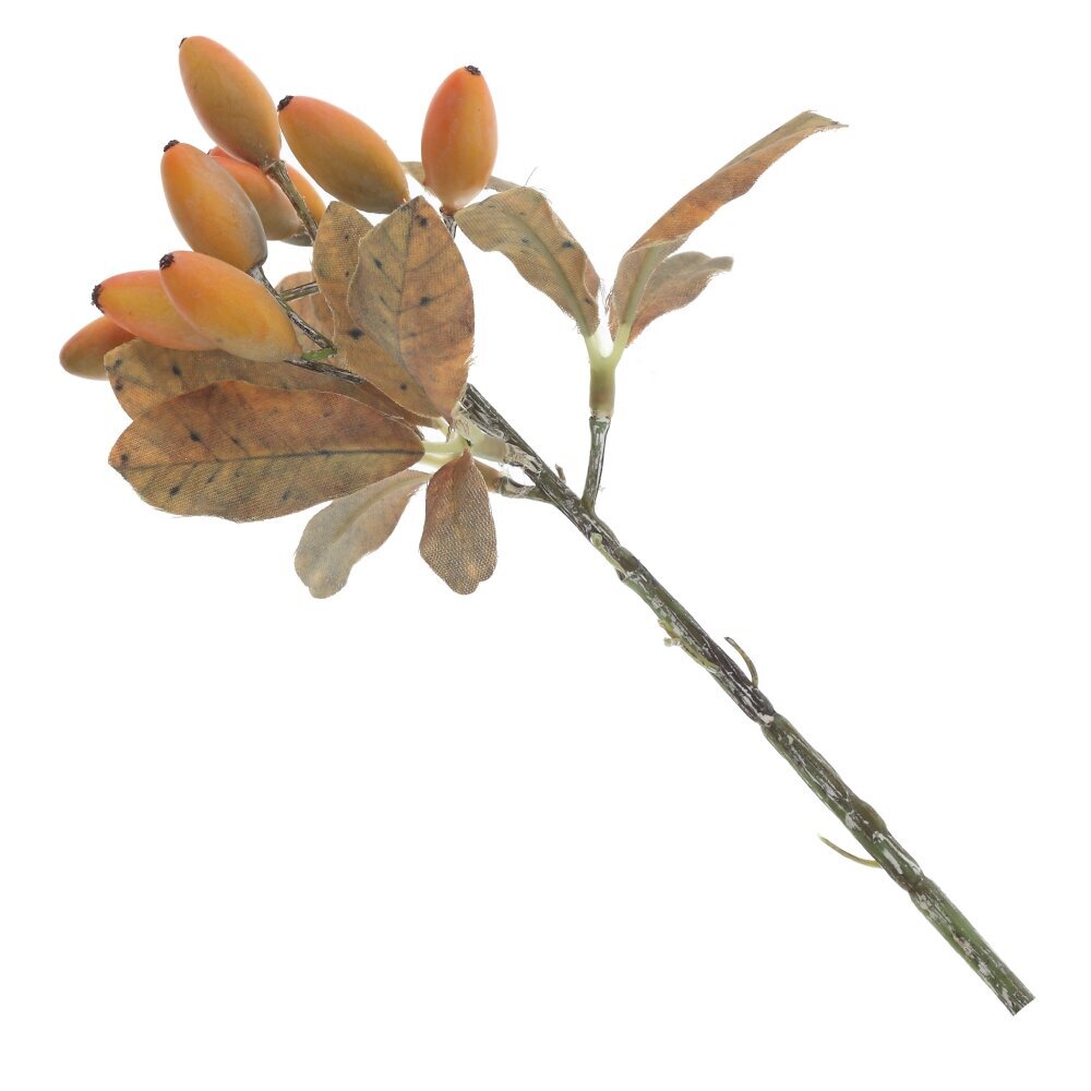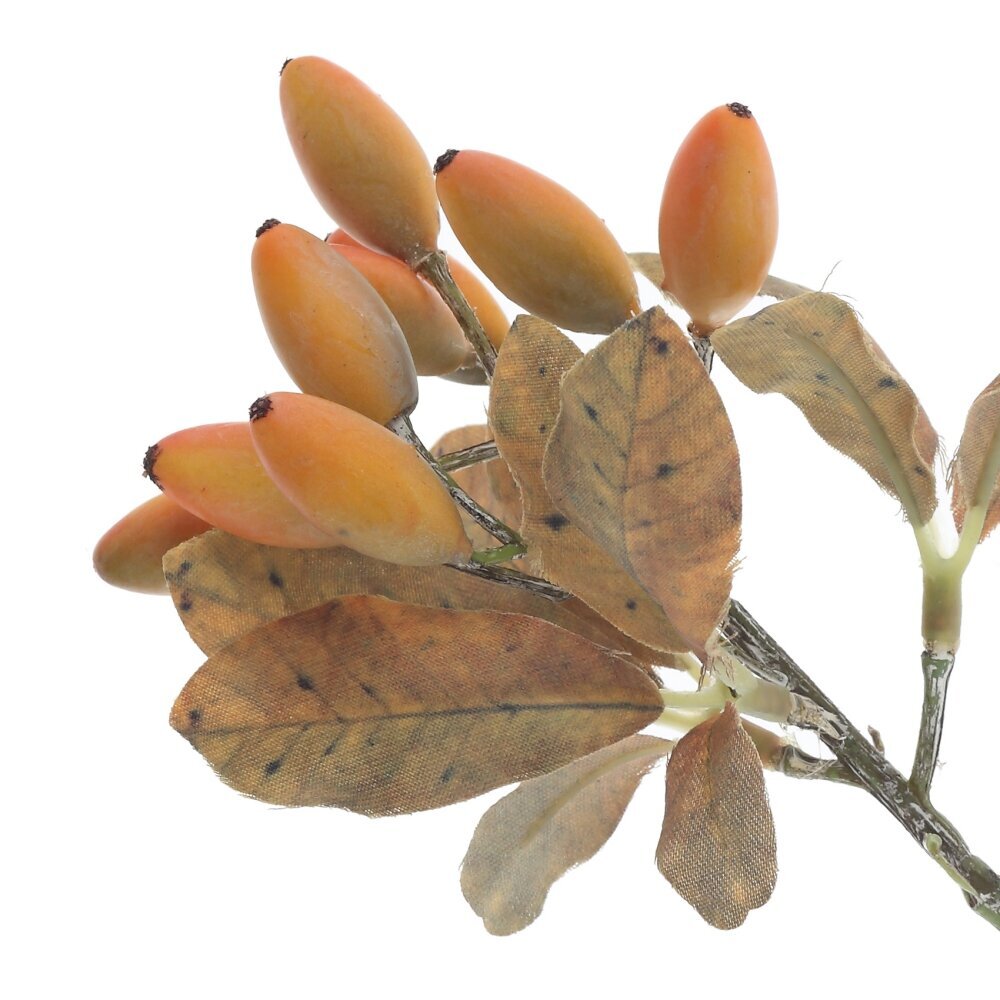 Искусственная ветка «Барбарис» — изящный декоративный акцент в теплой осенней гамме. Удлиненные ягоды терракотово?оранжевого цвета собраны в небольшие кисти, листья с тонкими прожилками и естественными крапинками выполнены из плотного текстиля, стебель на гибкой проволочной основе покрыт пластиком под кору. Ветка не осыпается, не требует ухода и сохраняет насыщенные оттенки круглый год. Идеальна для букетов, сухих композиций, венков и новогодних аранжировок; красиво смотрится в одиночной вазе, витринах, фотозонах. Легко комбинируется с зеленью и светлыми цветами, добавляя интерьеру уют и атмосферу поздней осени.