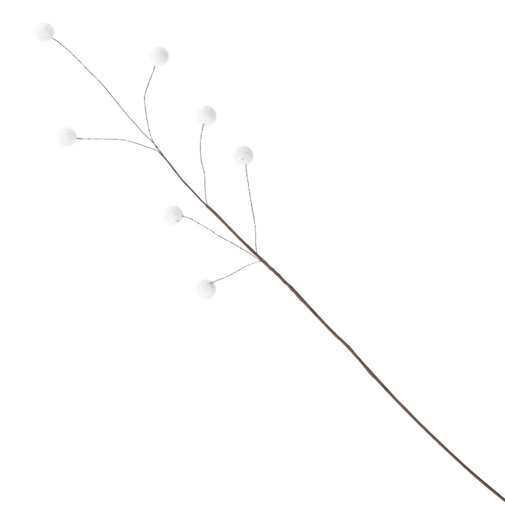 Искусственная ветка из полимерных материалов и металла — это стильный декоративный элемент, который отлично подойдет для украшения интерьера. Она имеет изящную форму с тонкими веточками, украшенными мягкими белыми шариками. Такая ветка станет прекрасным дополнением новогоднего декора, создаст атмосферу уюта и зимней сказки. Материалы, из которых выполнено изделие, обеспечивают его долговечность, прочность и устойчивость к внешним воздействиям. Можно использовать как отдельно, так и в композиции с другими декоративными элементами.