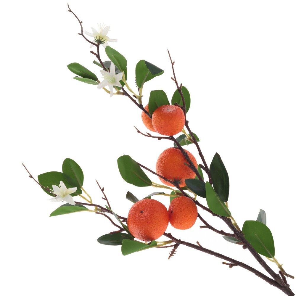 Ветка искусственная "Мандарин" олицетворяет великолепие и изысканность этого прекрасного плода. Она создаст атмосферу южной экзотики и летнего счастья в любом интерьере. Ветка имеет высокое качество изготовления и невероятно реалистичный вид. Шелковистые и сочные листья точно имитируют фактуру настоящего мандаринового дерева, отражая его природную красоту. На ветке располагается несколько красочных плодов, блистающих яркой оранжевой окраской, таких же, как и настоящие мандарины. Дополнительным украшением ветки являются нежные цветки. Они символизируют цветение мандаринового дерева и придают ощущение нежности и романтики.