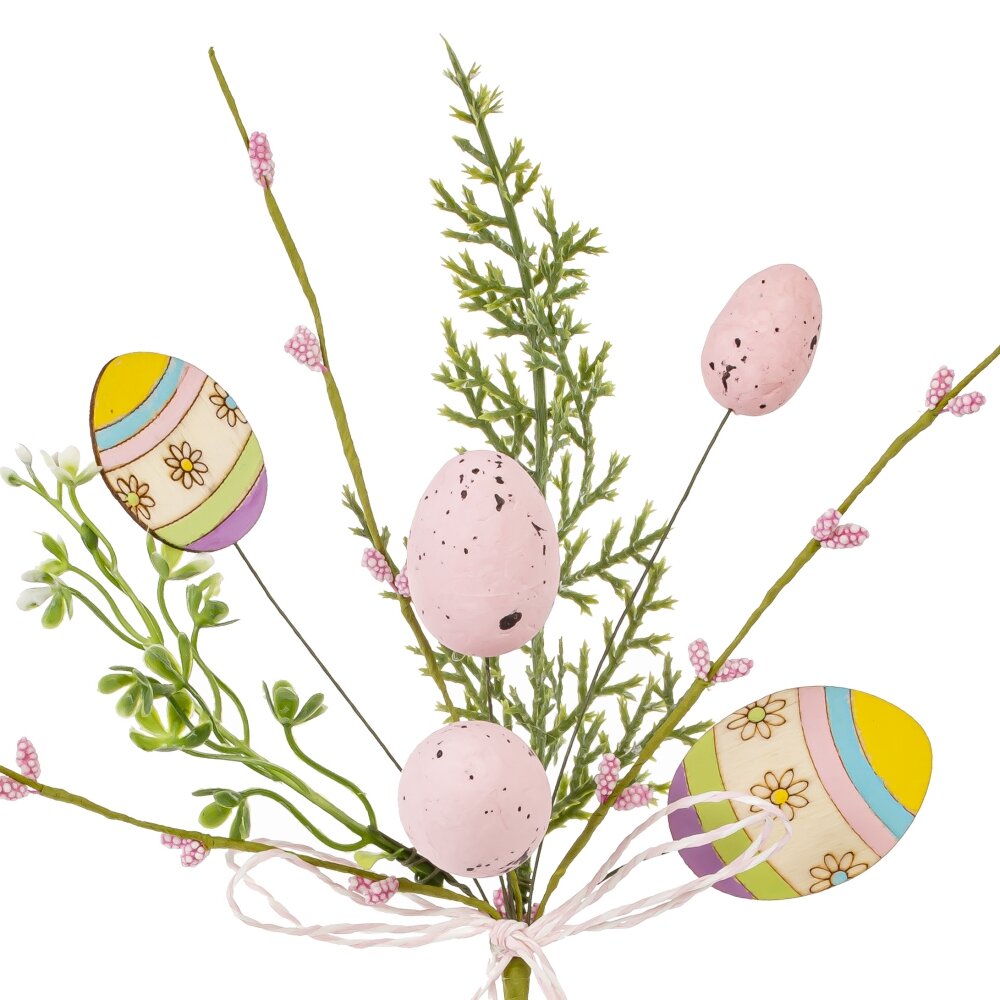 Искусственная пасхальная ветка – это прекрасный декоративный элемент, который станет ярким дополнением к праздничному оформлению дома. Она выполнена из полимерных материалов, которые придают ей реалистичный внешний вид, а также украшается декоративными яйцами. Ветка объединяет в себе нежные весенние оттенки и праздничный декор: искусственные зеленые листья, миниатюрные цветочные элементы и аккуратно расписанные деревянные яйца. Яйца окрашены в пастельные тона и украшены узорами, соответствующими пасхальной тематике. Некоторые из них имеют классическую окраску со вкраплениями, создавая эффект натуральных перепелиных яиц, а другие расписаны яркими узорами, подчеркивающими атмосферу праздника. Ветка может быть использована как самостоятельный элемент декора или стать частью цветочной композиции, оформленной в вазе. Она отлично вписывается в интерьер, придавая ему уют и торжественность. Благодаря качественным материалам, ветка долговечна, не теряет свою форму и будет радовать вас не один год. Это идеальное украшение для украшения праздничного стола, оформления пасхальной корзины или создания тематических композиций.
