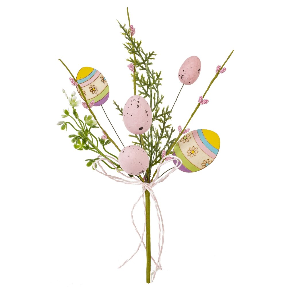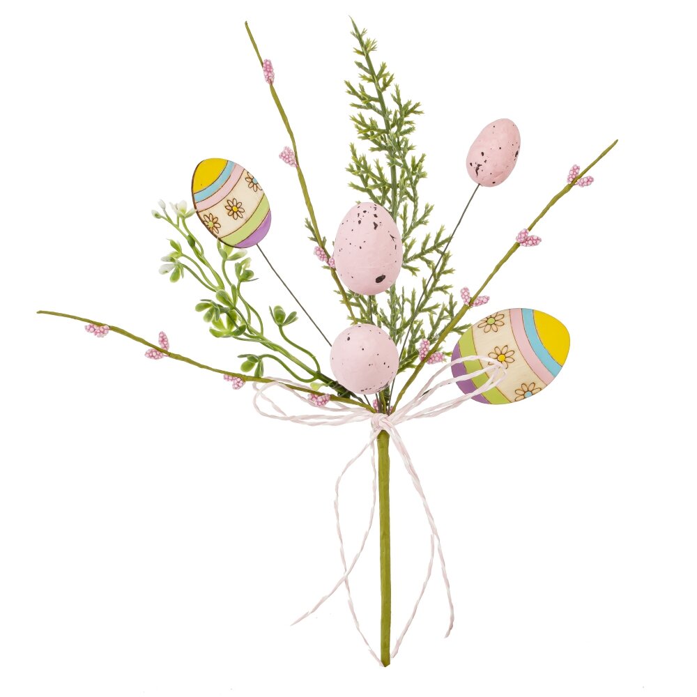 Искусственная пасхальная ветка – это прекрасный декоративный элемент, который станет ярким дополнением к праздничному оформлению дома. Она выполнена из полимерных материалов, которые придают ей реалистичный внешний вид, а также украшается декоративными яйцами. Ветка объединяет в себе нежные весенние оттенки и праздничный декор: искусственные зеленые листья, миниатюрные цветочные элементы и аккуратно расписанные деревянные яйца. Яйца окрашены в пастельные тона и украшены узорами, соответствующими пасхальной тематике. Некоторые из них имеют классическую окраску со вкраплениями, создавая эффект натуральных перепелиных яиц, а другие расписаны яркими узорами, подчеркивающими атмосферу праздника. Ветка может быть использована как самостоятельный элемент декора или стать частью цветочной композиции, оформленной в вазе. Она отлично вписывается в интерьер, придавая ему уют и торжественность. Благодаря качественным материалам, ветка долговечна, не теряет свою форму и будет радовать вас не один год. Это идеальное украшение для украшения праздничного стола, оформления пасхальной корзины или создания тематических композиций.