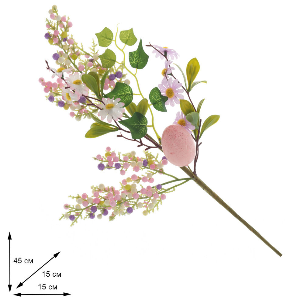 Искусственная ветка «Пасхальная» — это яркий и оригинальный элемент декора, который идеально подходит для создания весеннего настроения в вашем интерьере. Высотой 45 см, эта ветка будет гармонично смотреться как самостоятельный объект, так и в составе разнообразных композиций. Ветка украшена нежными розовыми и фиолетовыми цветами, которые напоминают о красоте весны и пробуждении природы. Зелёные веточки дополняют композицию, придавая ей свежесть и натуральность. Особенным акцентом является декоративное яйцо, которое символизирует Пасху и обновление жизни, добавляя уникальный и праздничный штрих. Искусственная «Пасхальная» ветка не только украсит ваш дом, но и станет отличным элементом для создания праздничной атмосферы, в том числе во время Пасхи. Вставьте её в стеклянную вазу или используйте в составе цветочных композиций — она прекрасно дополнит любой стиль оформления.