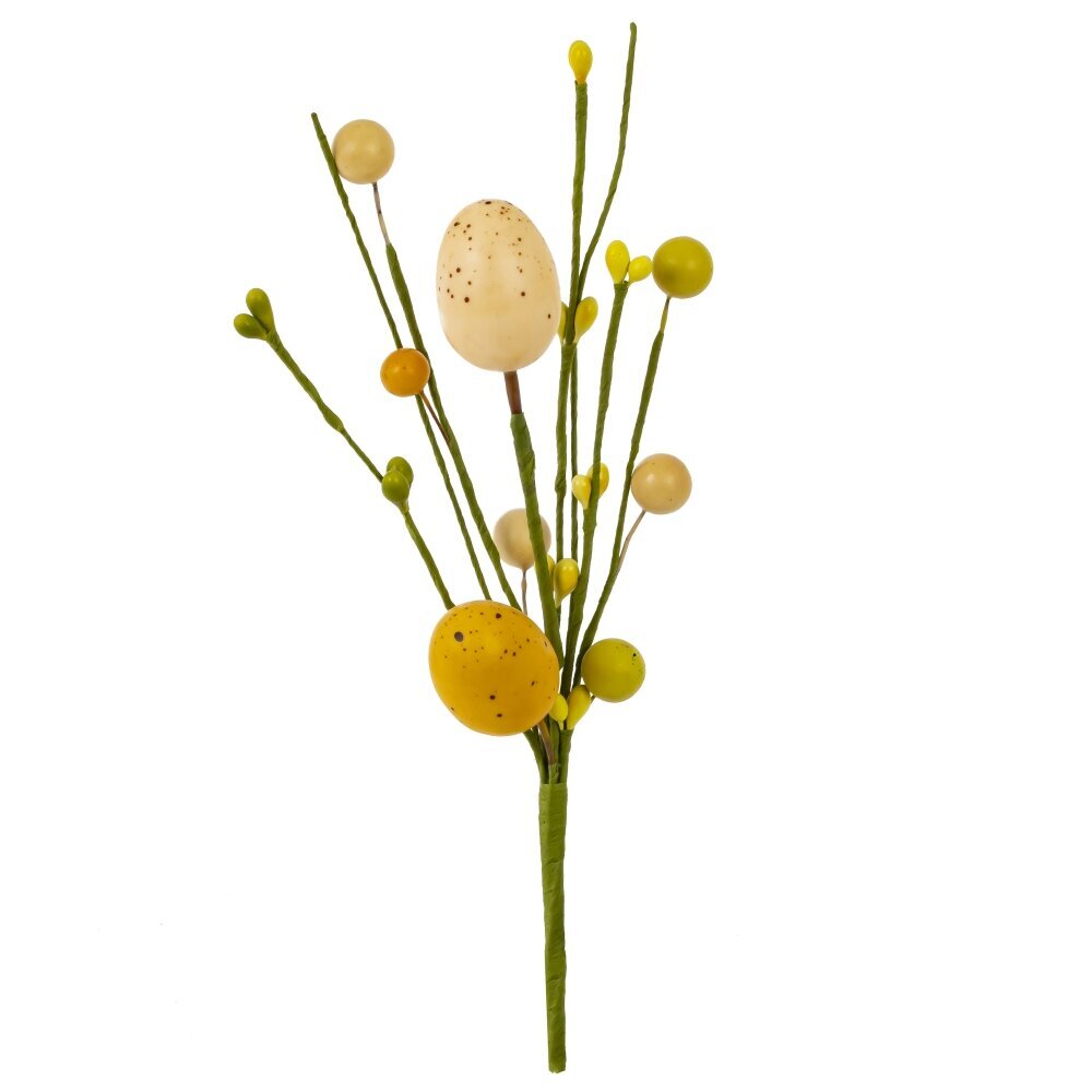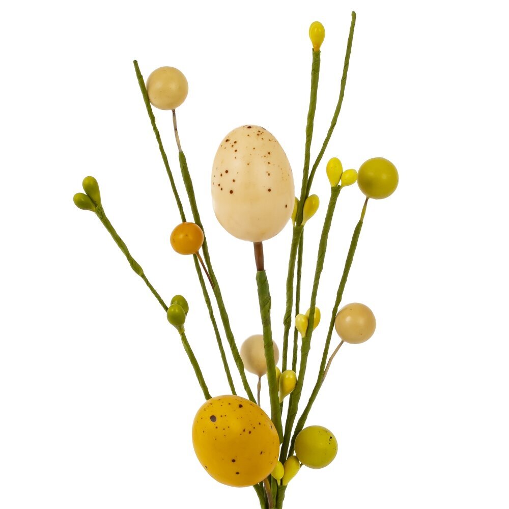 Искусственная пасхальная ветка — это прекрасный элемент декора, который поможет создать праздничную атмосферу в доме. Она изготовлена из полимерных материалов и металла, что делает её долговечной и устойчивой к внешним воздействиям. Декоративные элементы в виде мелких шариков и искусственных яиц, окрашенные в пастельные и яркие оттенки, придают ветке элегантный и нарядный вид. Благодаря своей гибкости, ветку можно использовать в различных композициях: ее можно установить в вазе, комбинировать с другими декоративными элементами или использовать для украшения праздничного стола или венков. Натуральная фактура и гармоничные цветовые решения делают её удачным дополнением к любому интерьеру. Подобное украшение идеально подойдет для подготовки к Пасхе, создавая уютную и весеннюю атмосферу. Оно не требует особого ухода и на долгое время сохранит свой первоначальный внешний вид. Искусственная ветка станет приятным акцентом в декоре и подчеркнет торжественность светлого праздника.