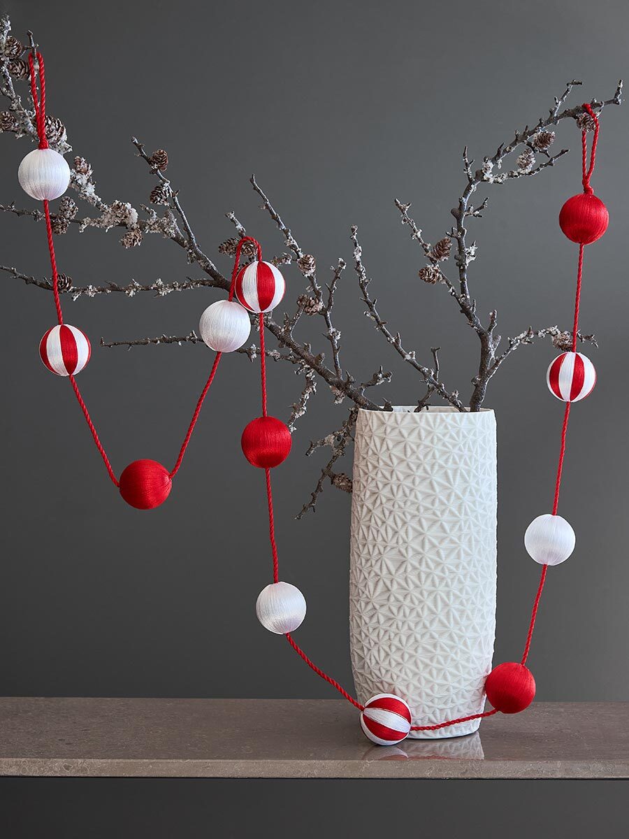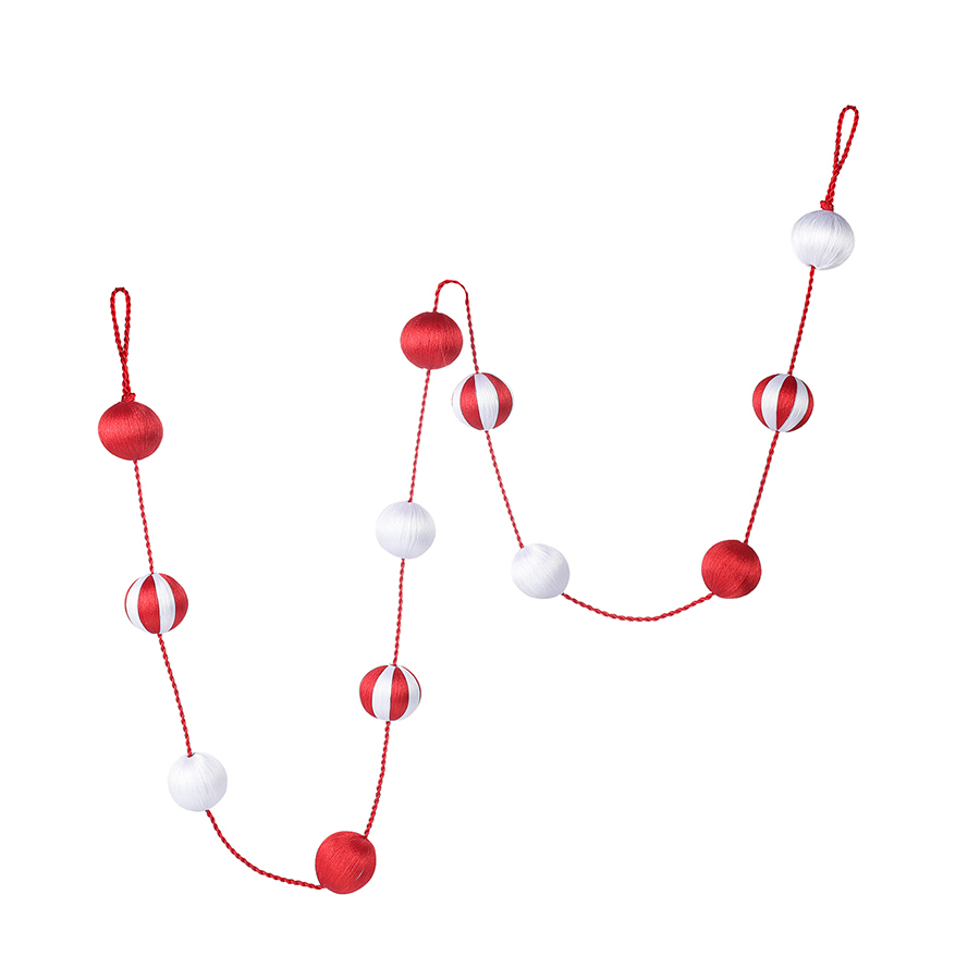 Ожерелье из разноцветных шариков закружит вашу красавицу-елку в новогоднем хороводе ярких красок. Выдержанный в красно-белом цвете, этот декор будет эффектно контрастировать с оттенком еловых ветвей.