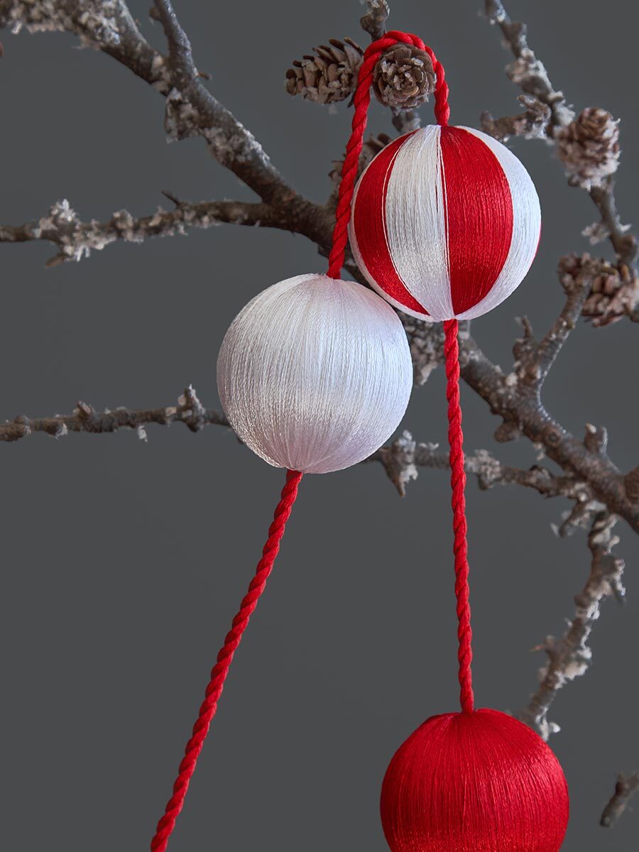 - Каркас шариков декорирован разноцветными полиэстеровыми нитями, которые со временем остаются такими же яркими и глянцевыми.