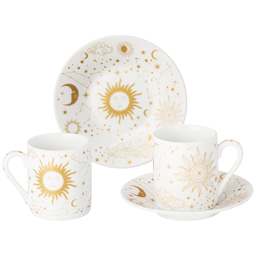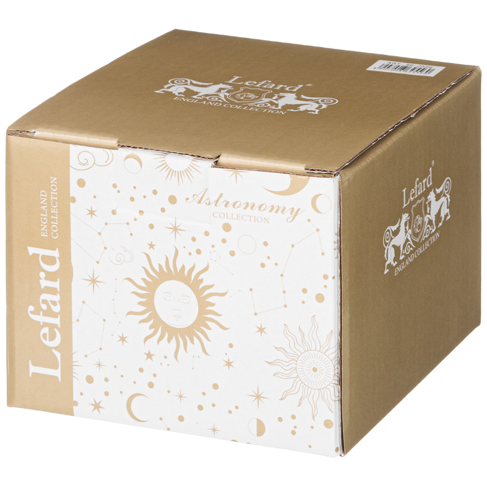TM LEFARD представляет элегантную коллекцию “Astronomy” из белоснежного упрочненного фарфора. Изящное изображение солнца, мерцающие звезды, созвездия и облака создают атмосферу тепла и уюта, превращая обычное чаепитие в момент вдохновения. Коллекция представлена чайными и кофейными парами, кружками, чайником и сахарницей, блюдом для сладкого. Красочная упаковка, прекрасный подарок для мечтателей и романтиков, любящих все необычное и прекрасное. Посуда прошла сертификацию и подходит для контакта с пищевыми продуктами, легко моется в посудомоечной машине и может использоваться в микроволновой печи.