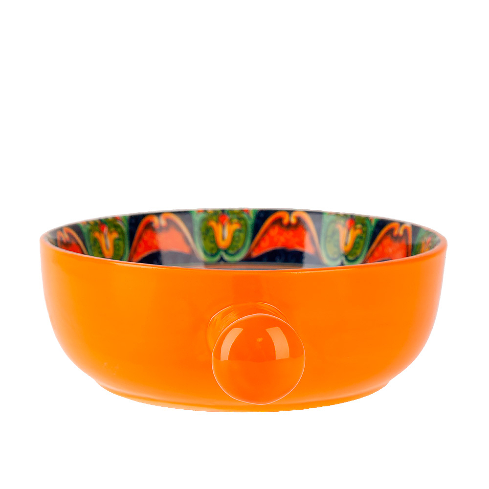 Каждый предмет из коллекции Arabesque создан с использованием дополнительного слоя глазури поверх деколи, что позволяет сделать поверхность глянцевой, а цвета максимально яркими. В результате получается неповторимое изделие, которое будет привлекать внимание и радовать глаза своих владельцев.