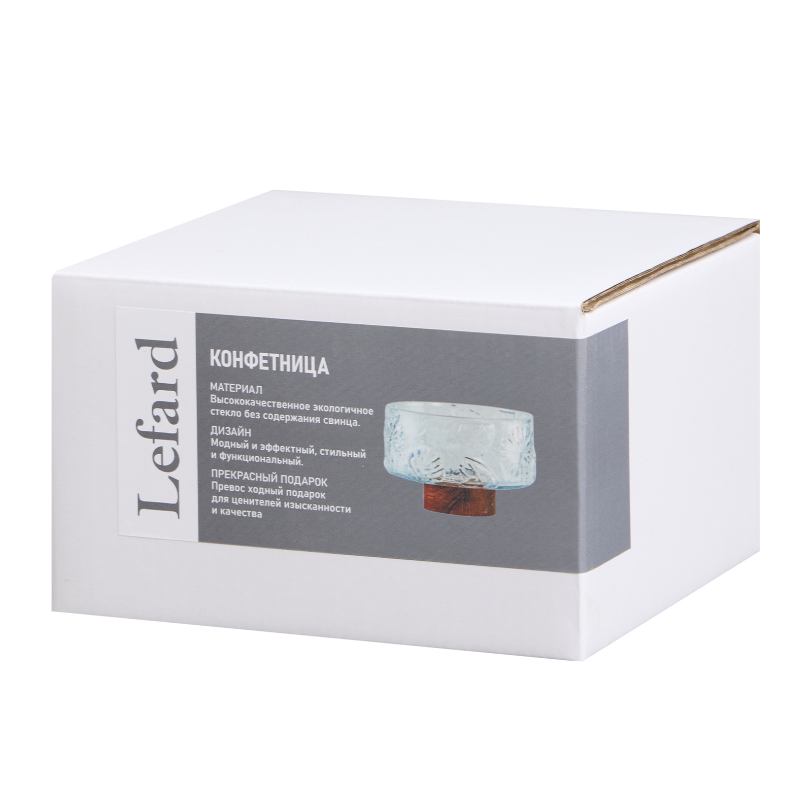 Пробуждайте чувства и создавайте уютную атмосферу с нашей красивой конфетницей, выполненной из экологически чистого стекла без содержания свинца. Ее утончённый дизайн с рельефными узорами и теплым деревянным основанием делает каждое чаепитие особенным.