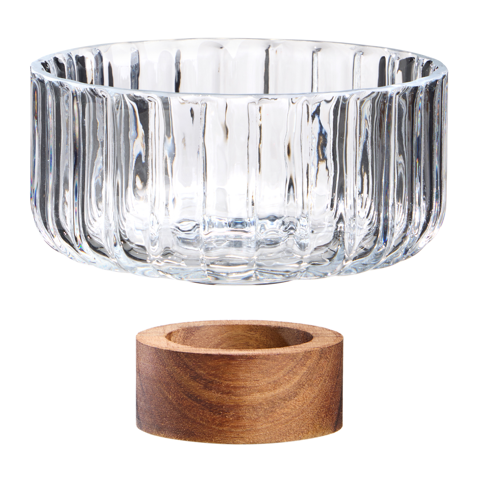 Грациозный дизайн с рифлёной поверхностью добавляет изделиям особый шарм и современный стиль. Прочное и натуральное деревянное основание из акации придает стабильность и подчеркивает натуральность материала.