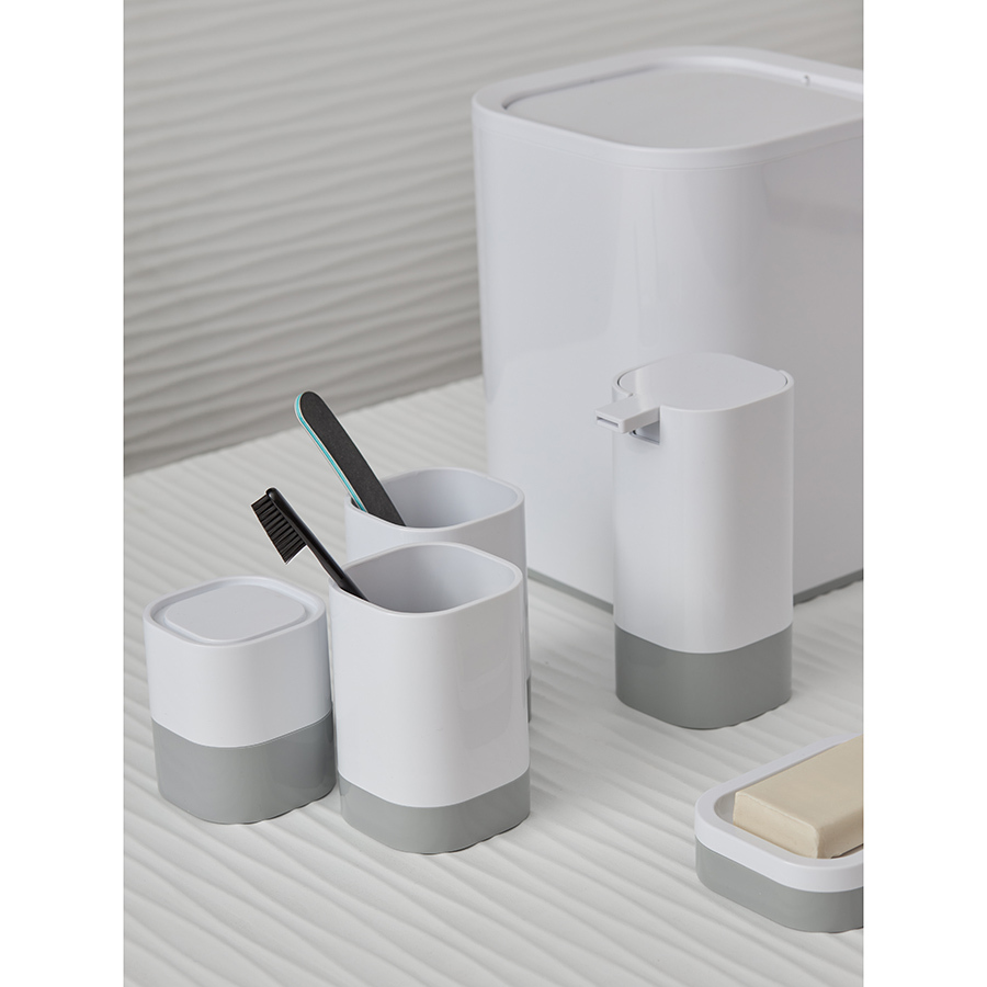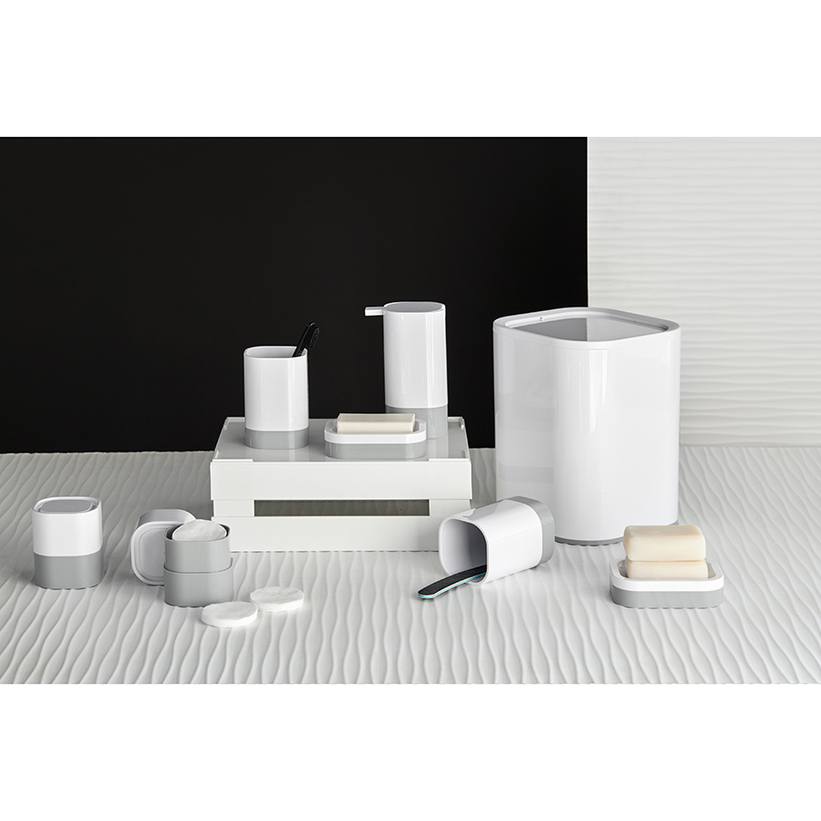 Коллекция для ванной комнаты Tyer – удачное сочетание практичности, функциональности и элегантной простоты. Аксессуары выполнены в бело-серой цветовой гамме, что придает им современный вид и делает их идеальным выбором для любого интерьера.